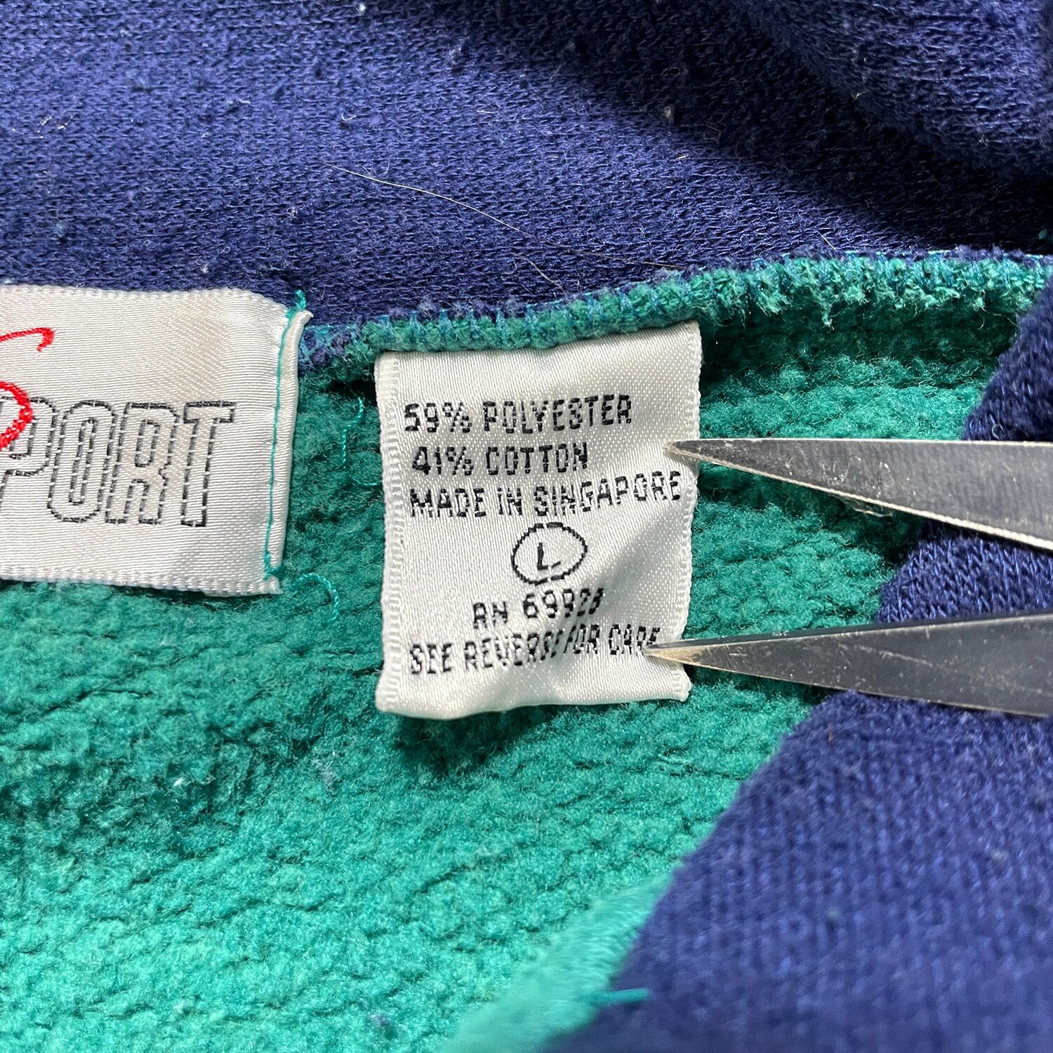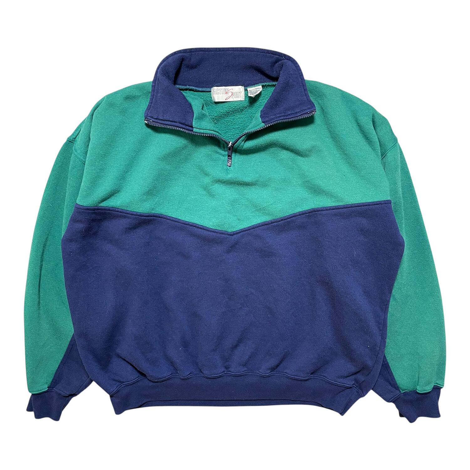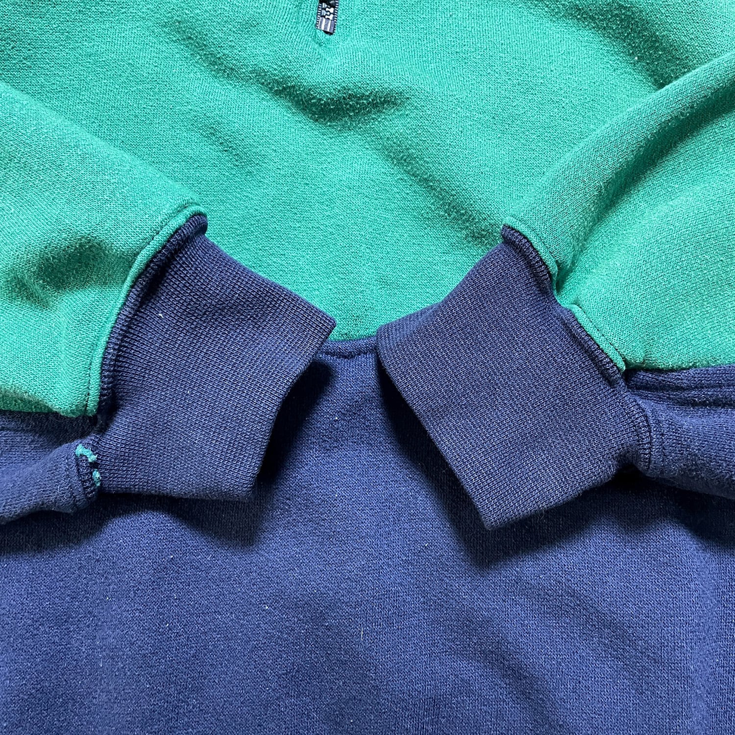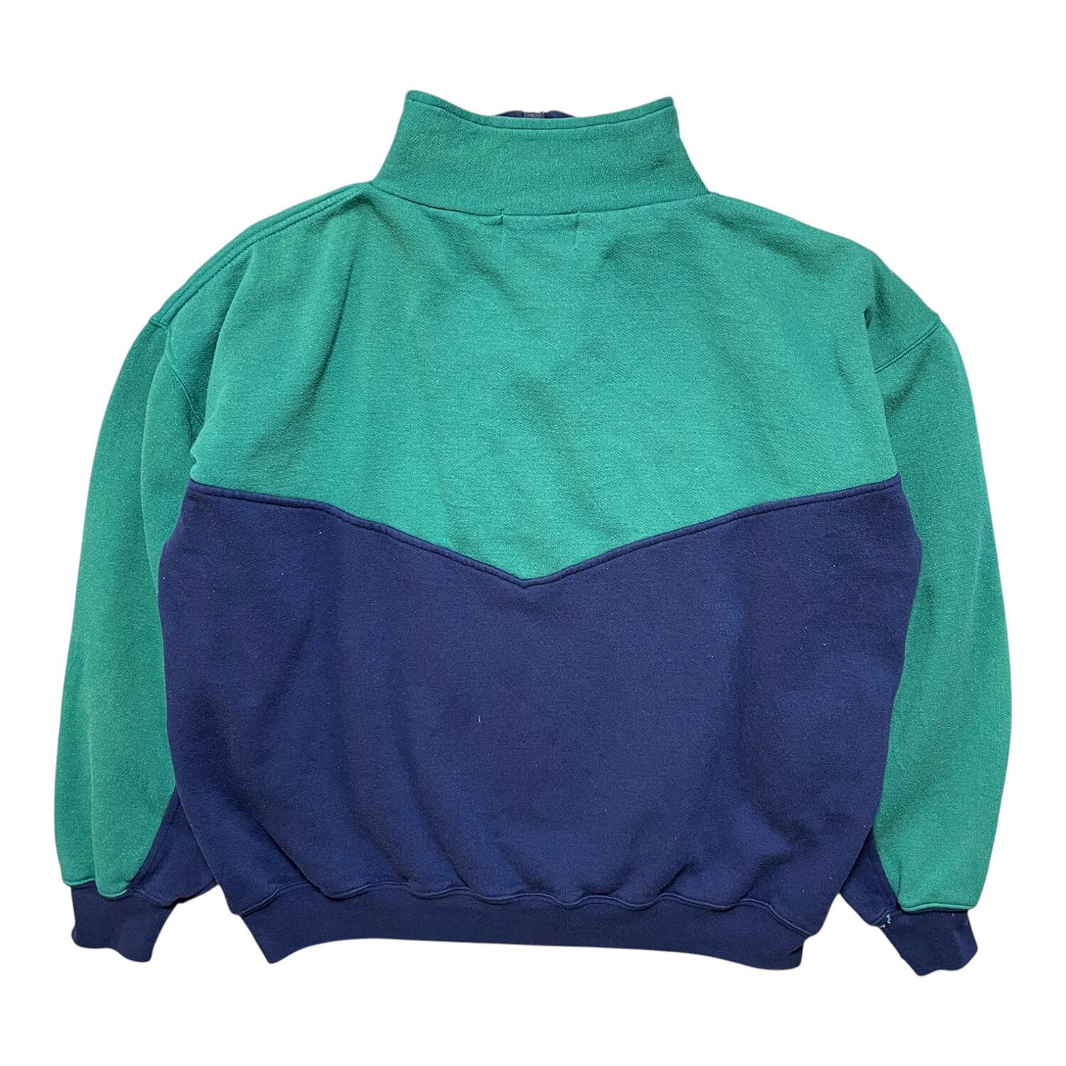 USA 古着 クレイジーパターン スウェット トレーナー ネイビー/グリーン メンズL ハーフジップ BD2476