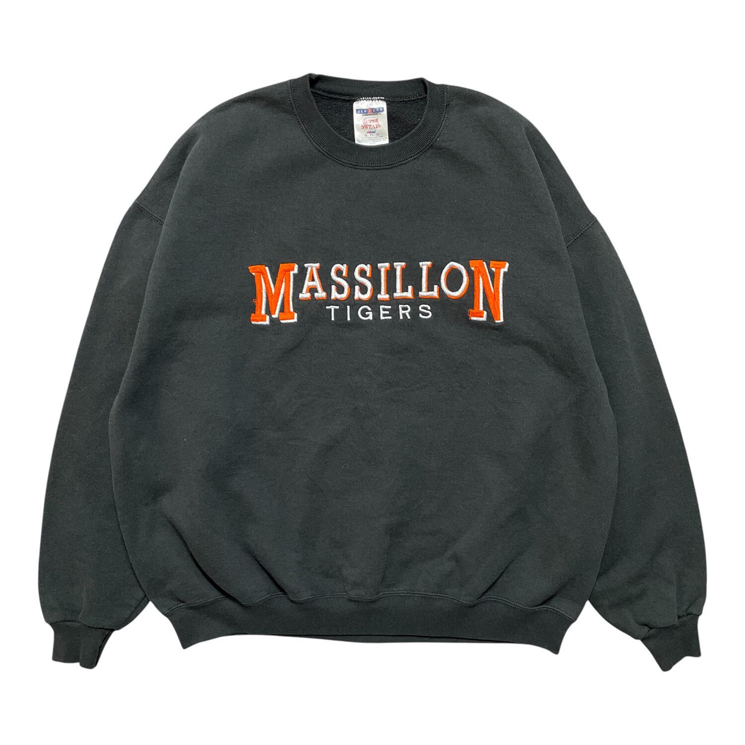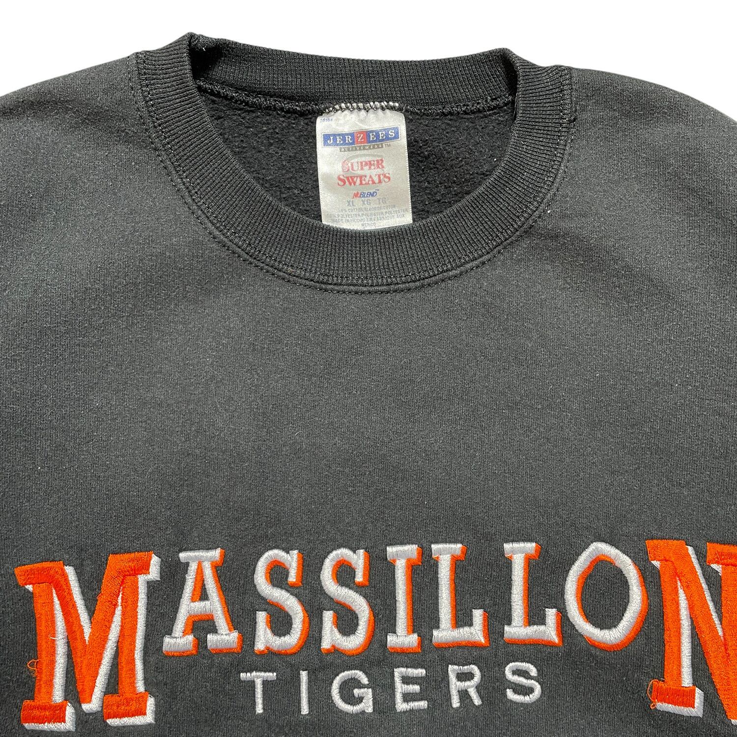 USA 古着 マシロンワシントン高校 ハイスクール スウェット トレーナー ロゴ 刺繍 ブラック メンズXL クルーネック BD2496