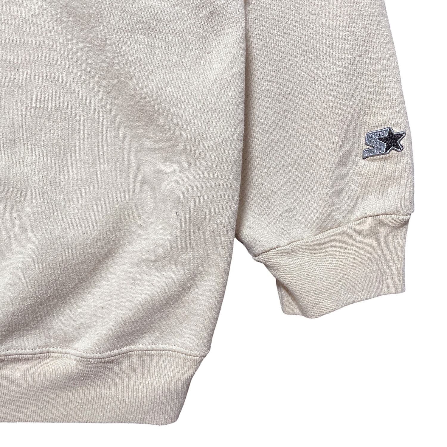USA 古着 STARTER スターター スウェット トレーナー ロゴ 刺繍 ワンポイント ベージュ メンズM 程度 クルーネック BD2453