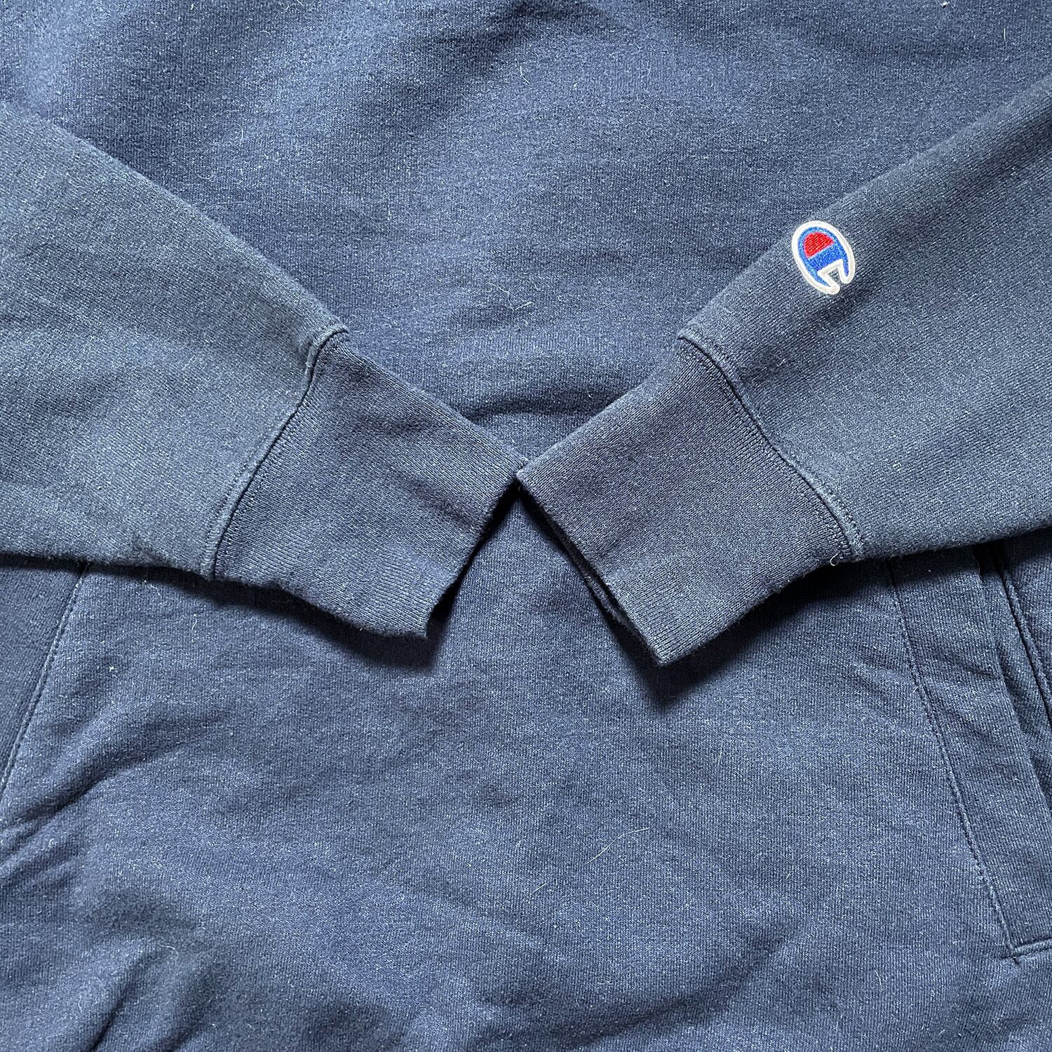 USA 古着 Champion チャンピオン 企業系 スウェット トレーナー ロゴ 刺繍 ワンポイント ネイビー メンズM ハーフジップ BD2459<