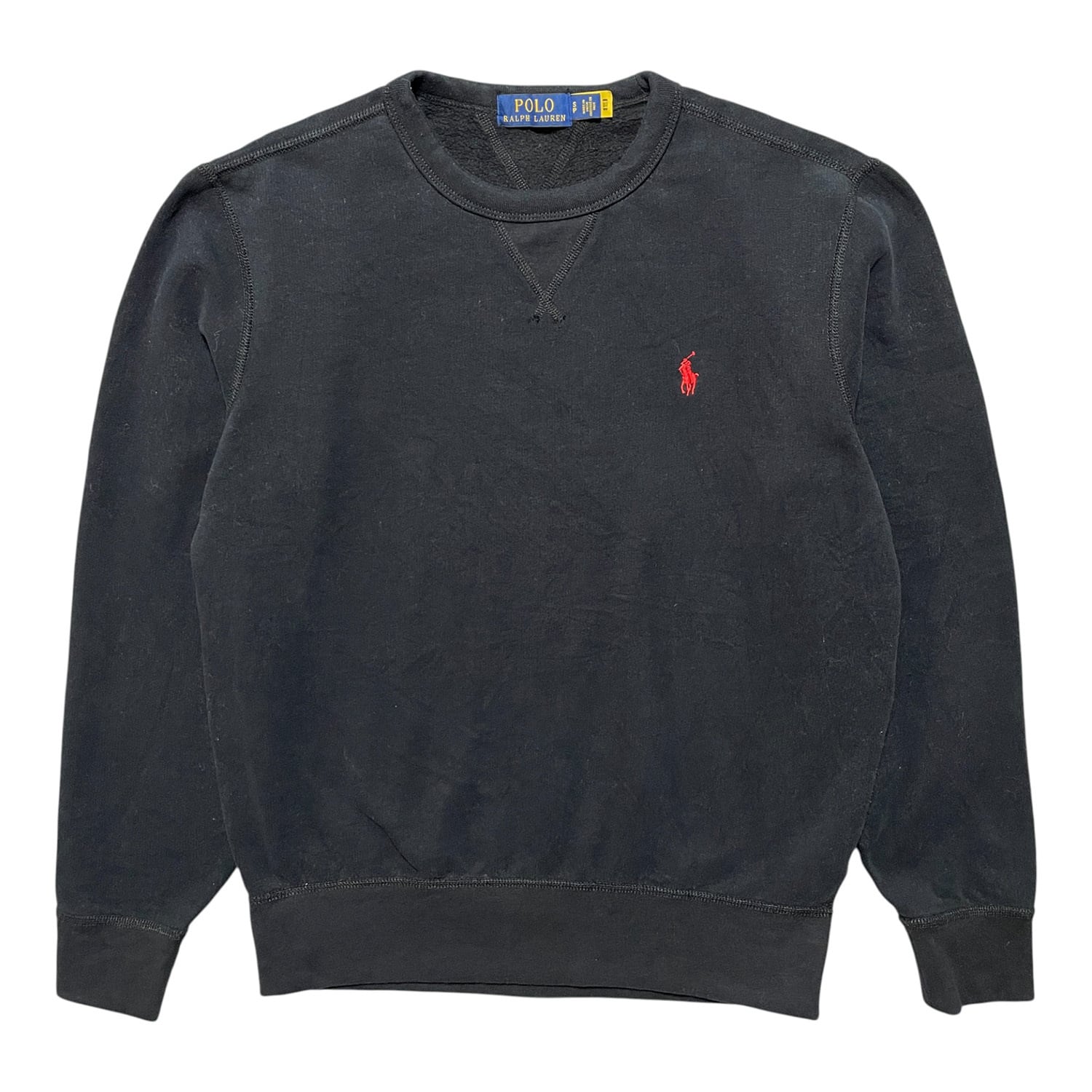 USA 古着 POLO RALPH LAUREN ポロラルフローレン スウェット トレーナー 前V ロゴ 刺繍 ブラック メンズS クルーネック BD2461