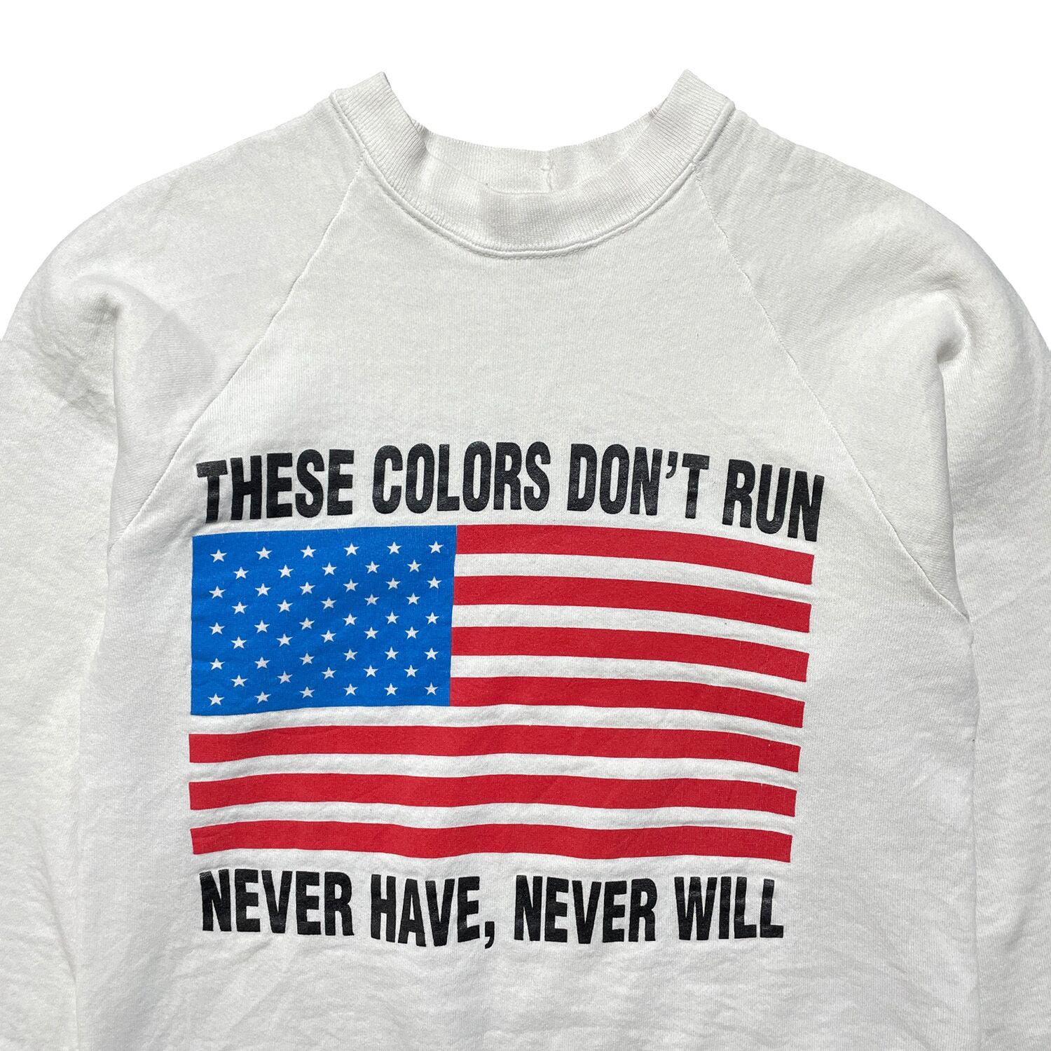 古着 USA製 90s ヴィンテージ 星条旗 スウェット トレーナー プリント ホワイト メンズM クルーネック BD2452