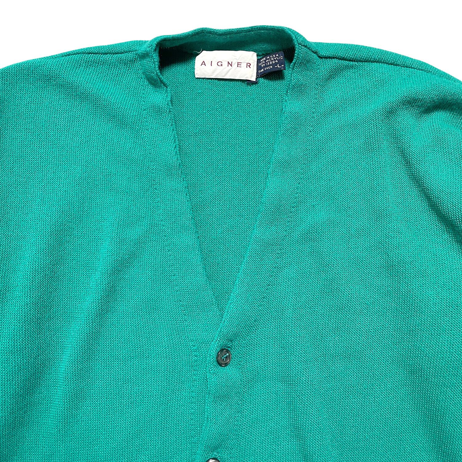USA 古着 USA製 AIGNER ヴィンテージ アクリル カーディガン 無地 グリーン系 メンズL BH0307