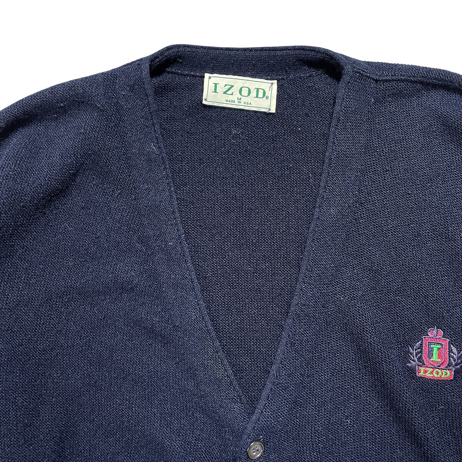 USA 古着 USA製 IZOD ヴィンテージ アイゾッド アクリル カーディガン メンズM ネイビー 紺色 BH0344