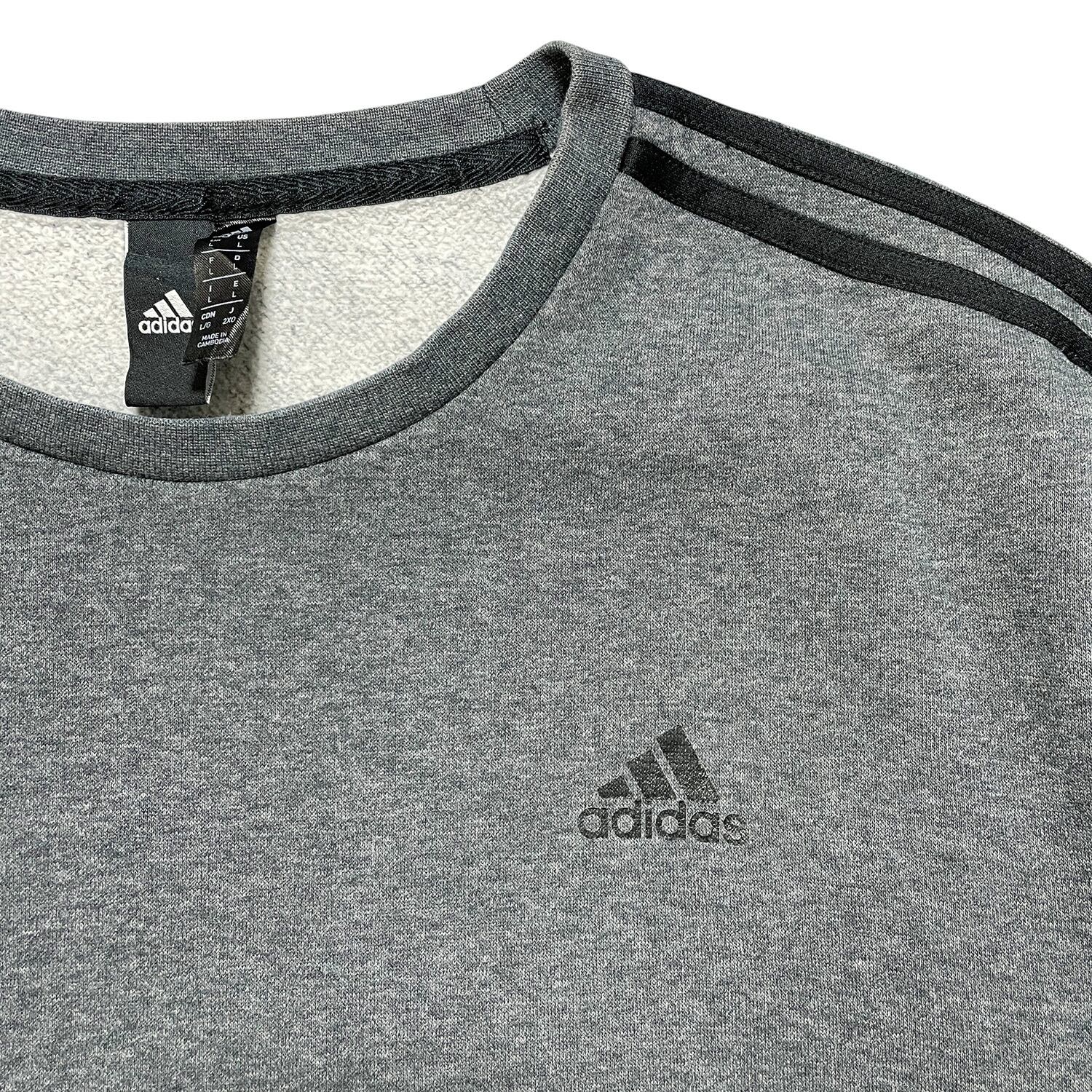 USA 古着 adidas アディダス スウェット トレーナー ロゴ プリント スリーストライプス チャコールグレー メンズL クルーネック BD2579
