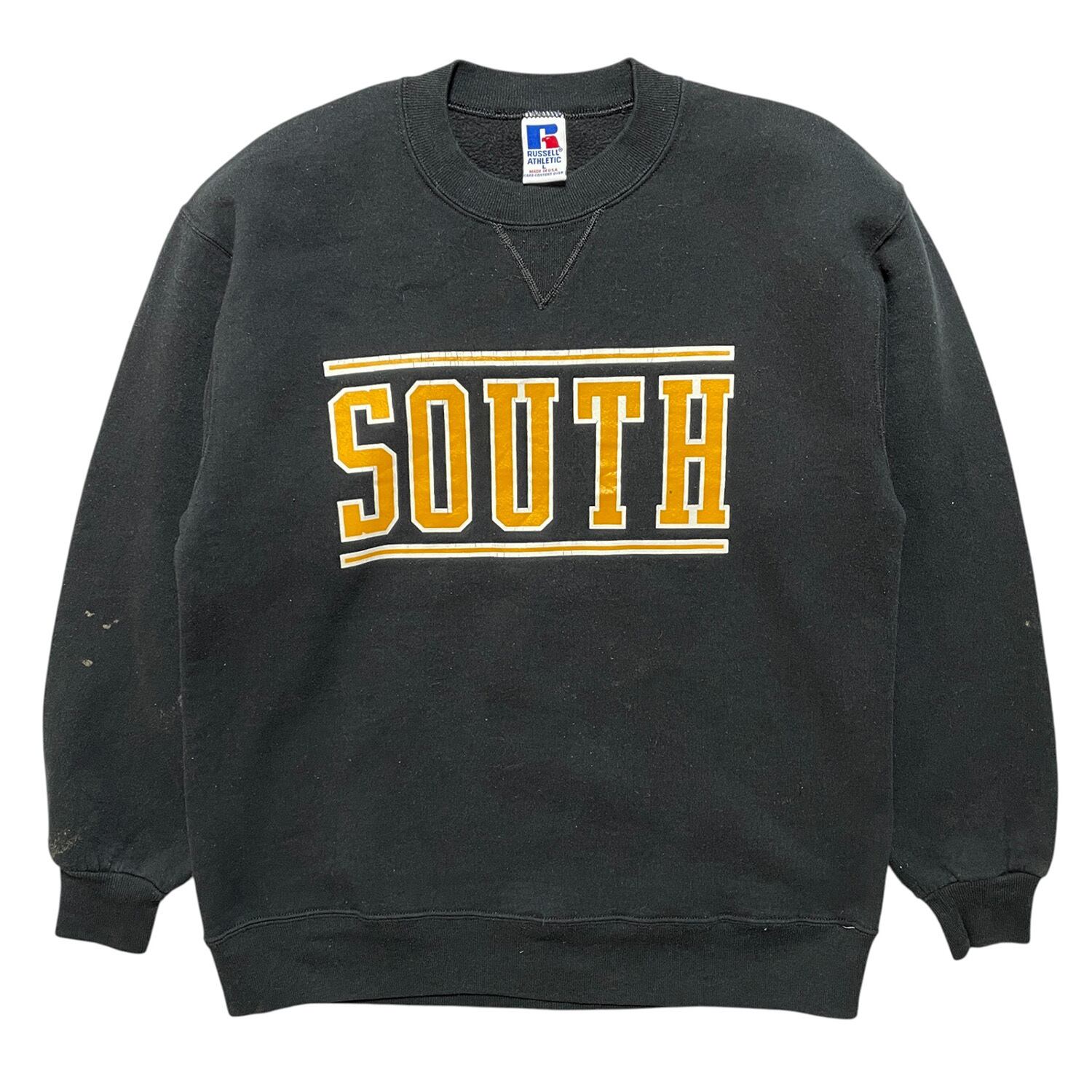 古着 USA製 90S Russell ラッセル ヴィンテージ サウス大学 カレッジ スウェット トレーナー ブラック メンズL クルーネック BD2565