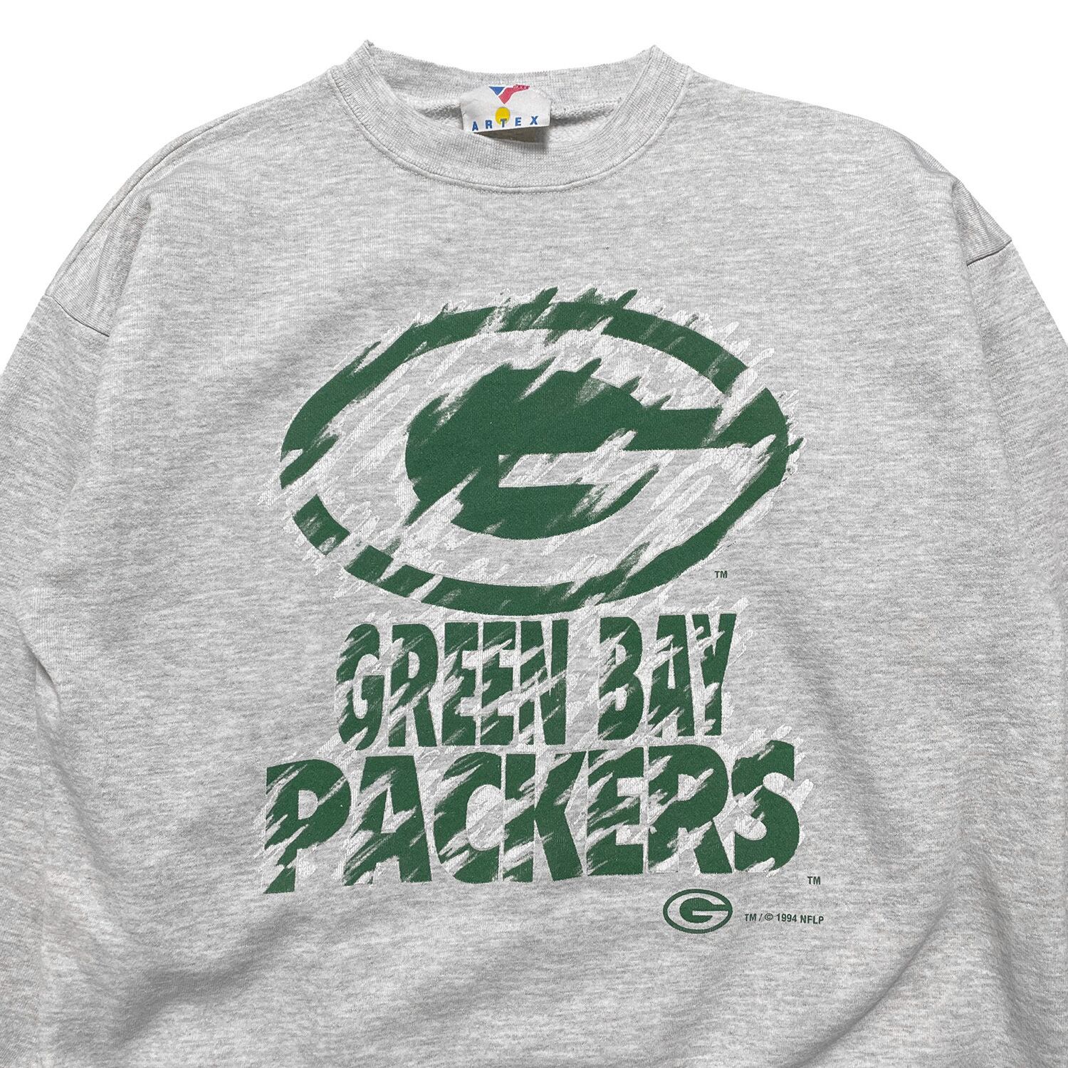 古着 USA製 90S NFL グリーンベイパッカーズ ヴィンテージ スウェット トレーナー ロゴ プリント グレー メンズXL クルーネック BD2569