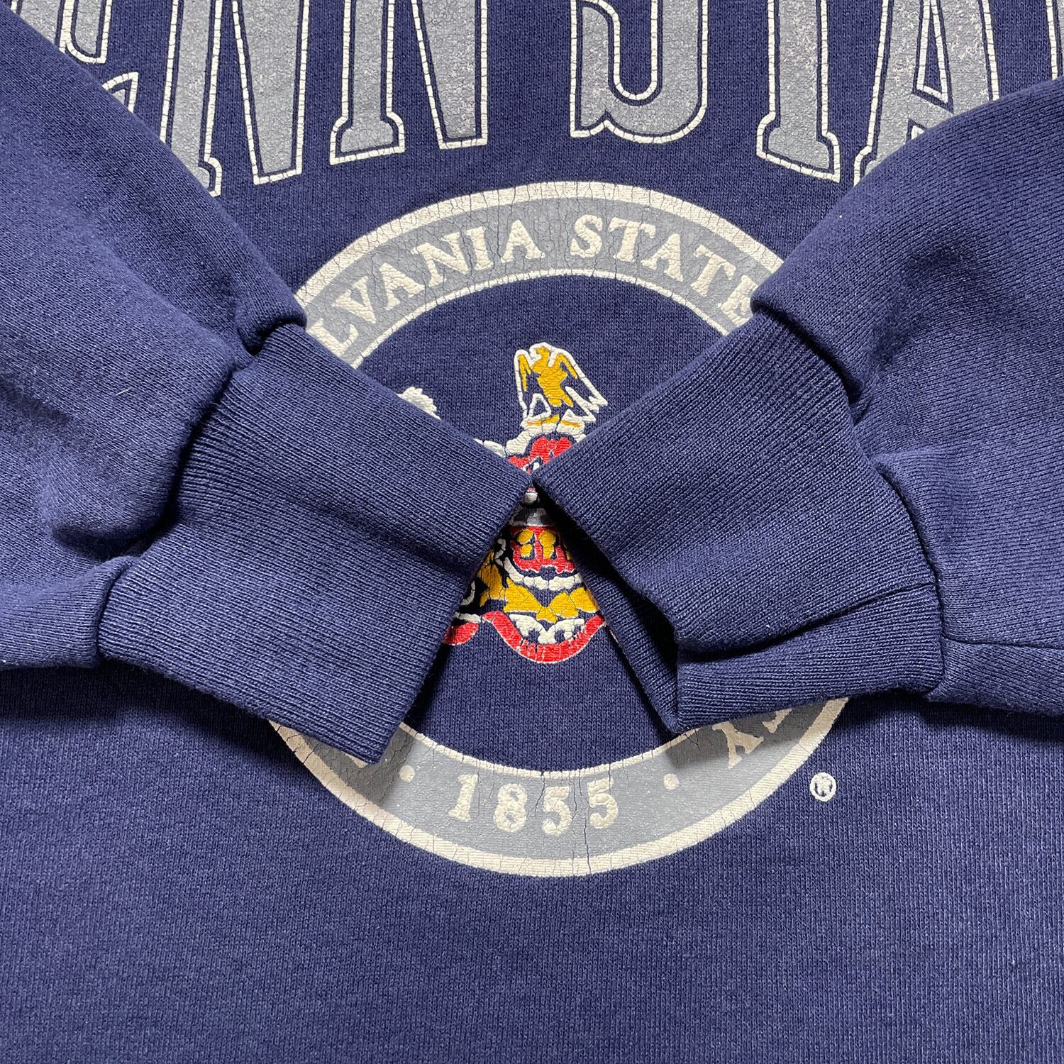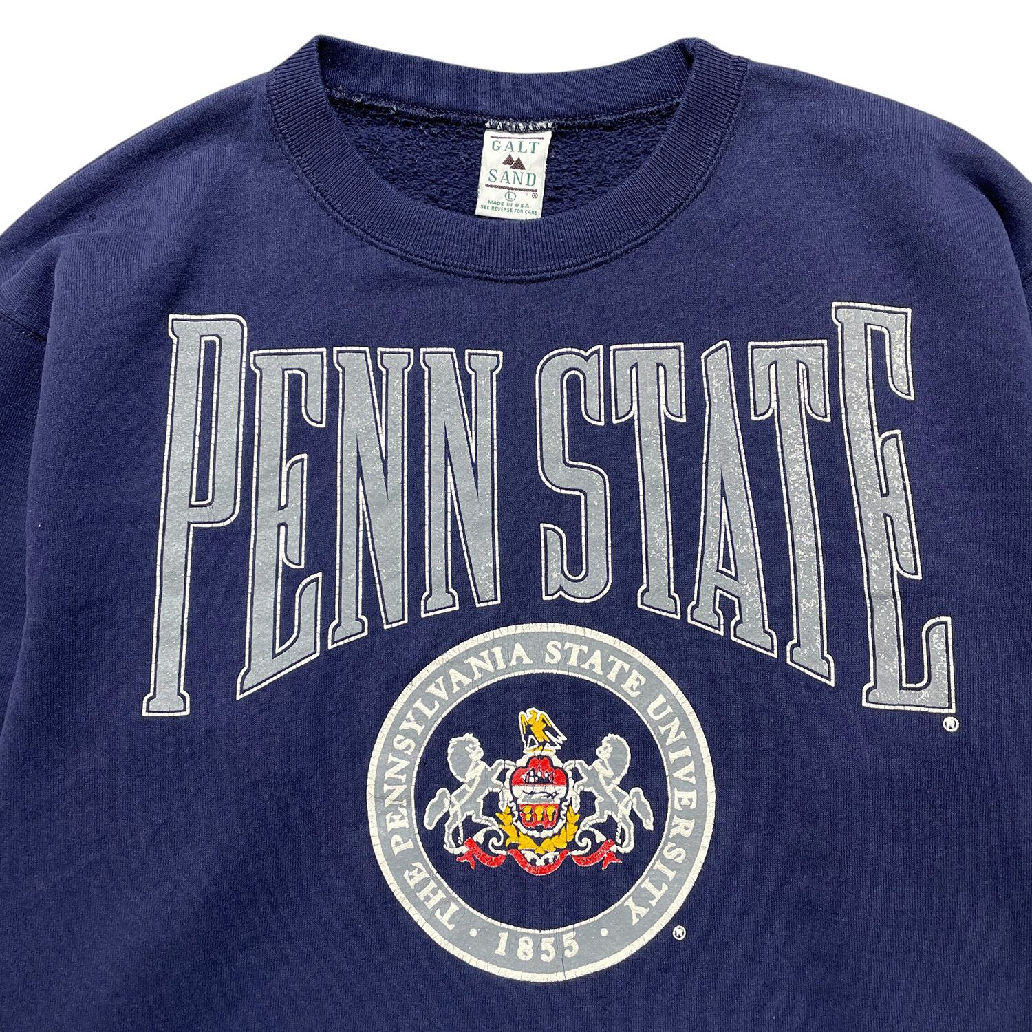 古着 USA製 90S ペンシルベニア州立大学 カレッジ ヴィンテージ スウェット トレーナー プリント ネイビー メンズL クルーネック BD2556