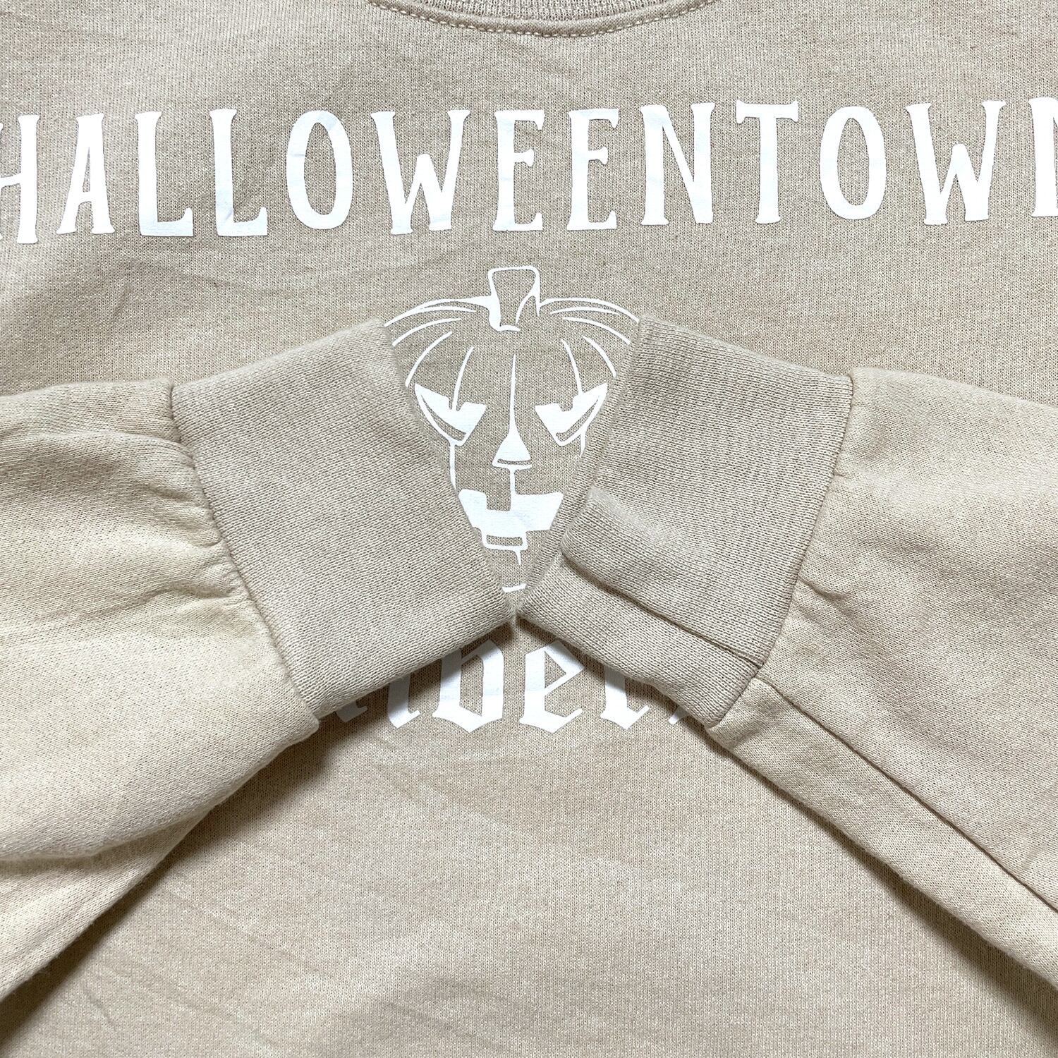 USA 古着 ハロウィーン カボチャ スウェット トレーナー プリント ベージュ メンズM クルーネック BD2492
