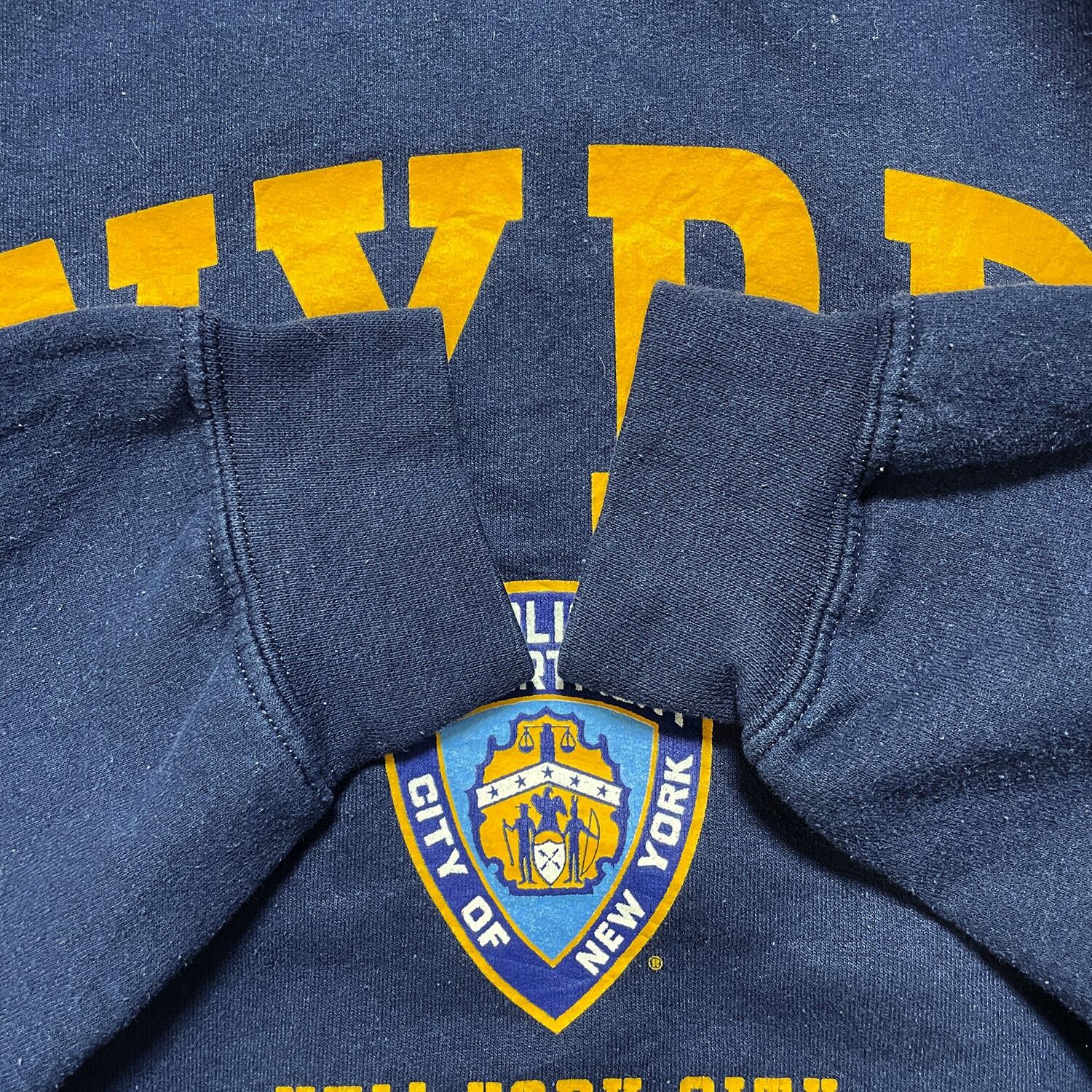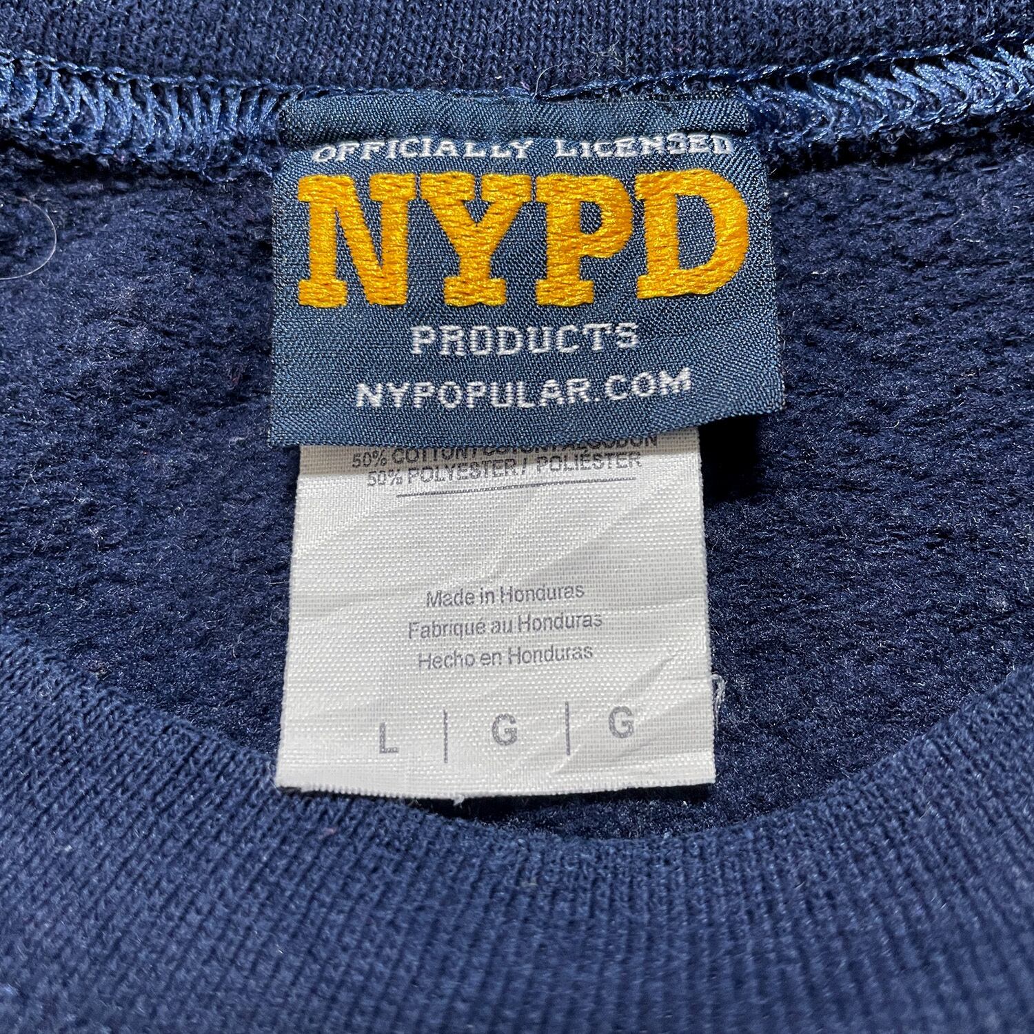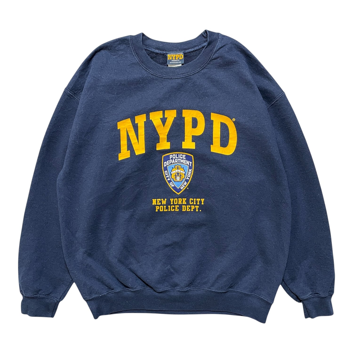 USA 古着 ニューヨーク市警察 NYPD スウェット トレーナー ロゴ プリント ネイビー メンズL クルーネック BD2520