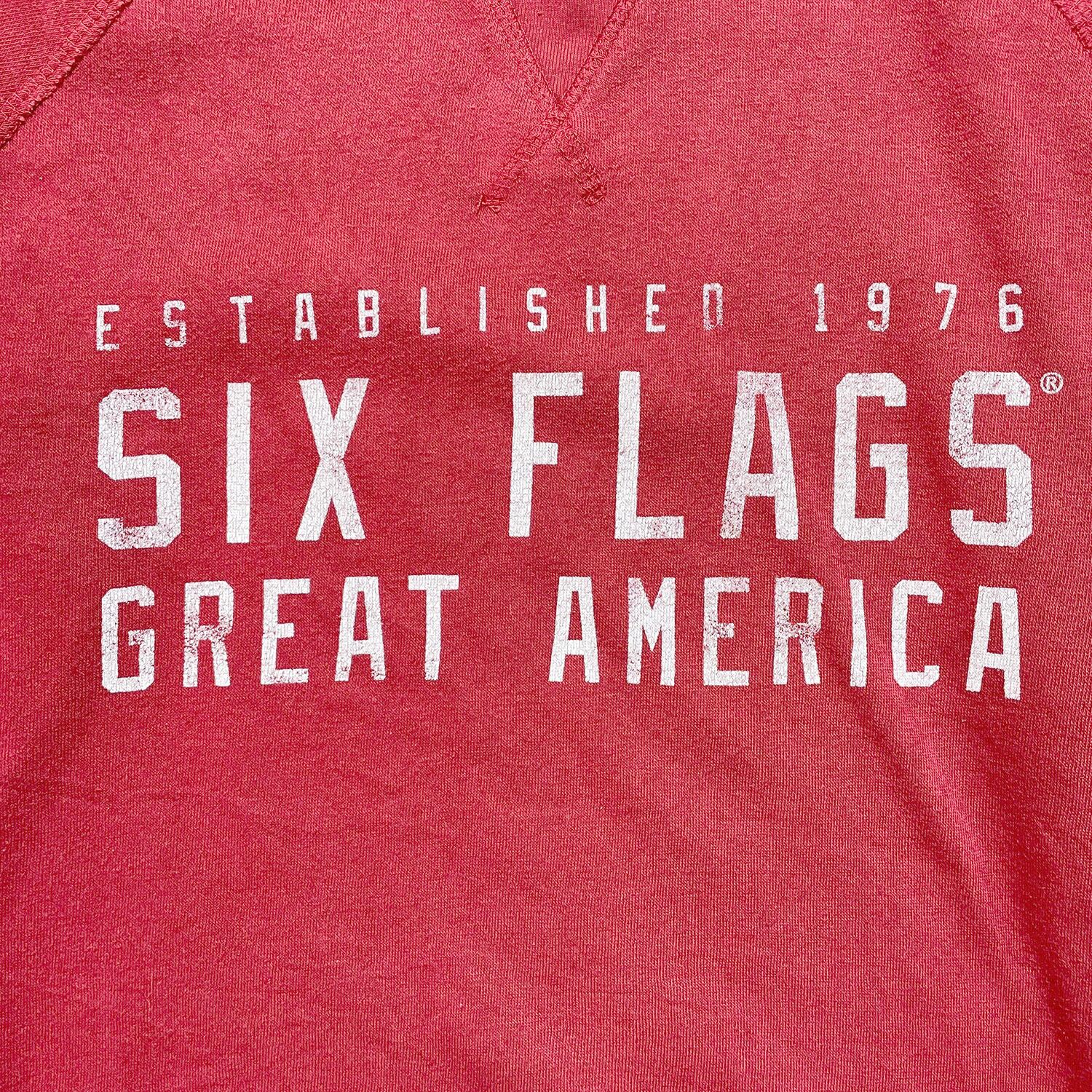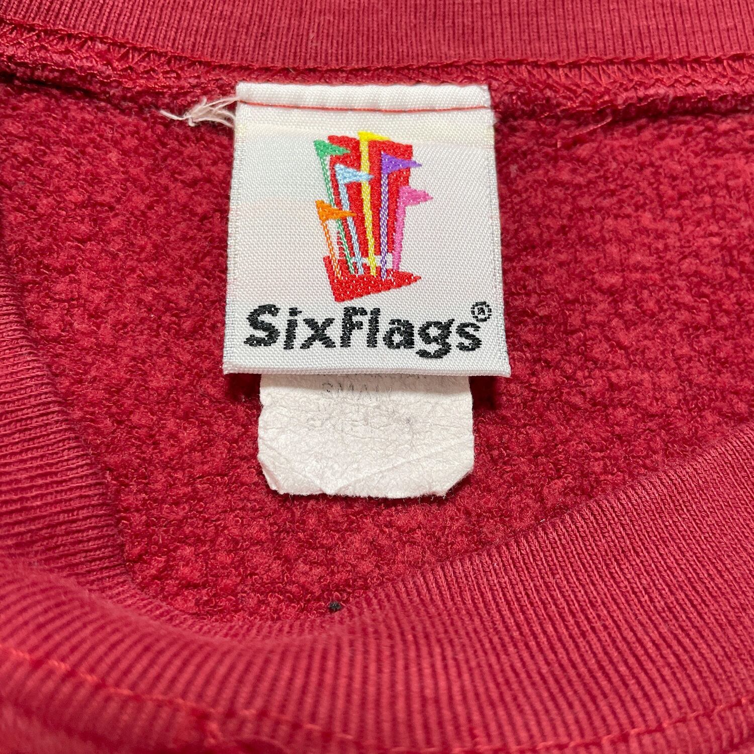 USA 古着 90S SIX FLAGS シックスフラッグ スウェット トレーナー ロゴ プリント レッド メンズS クルーネック BD2522