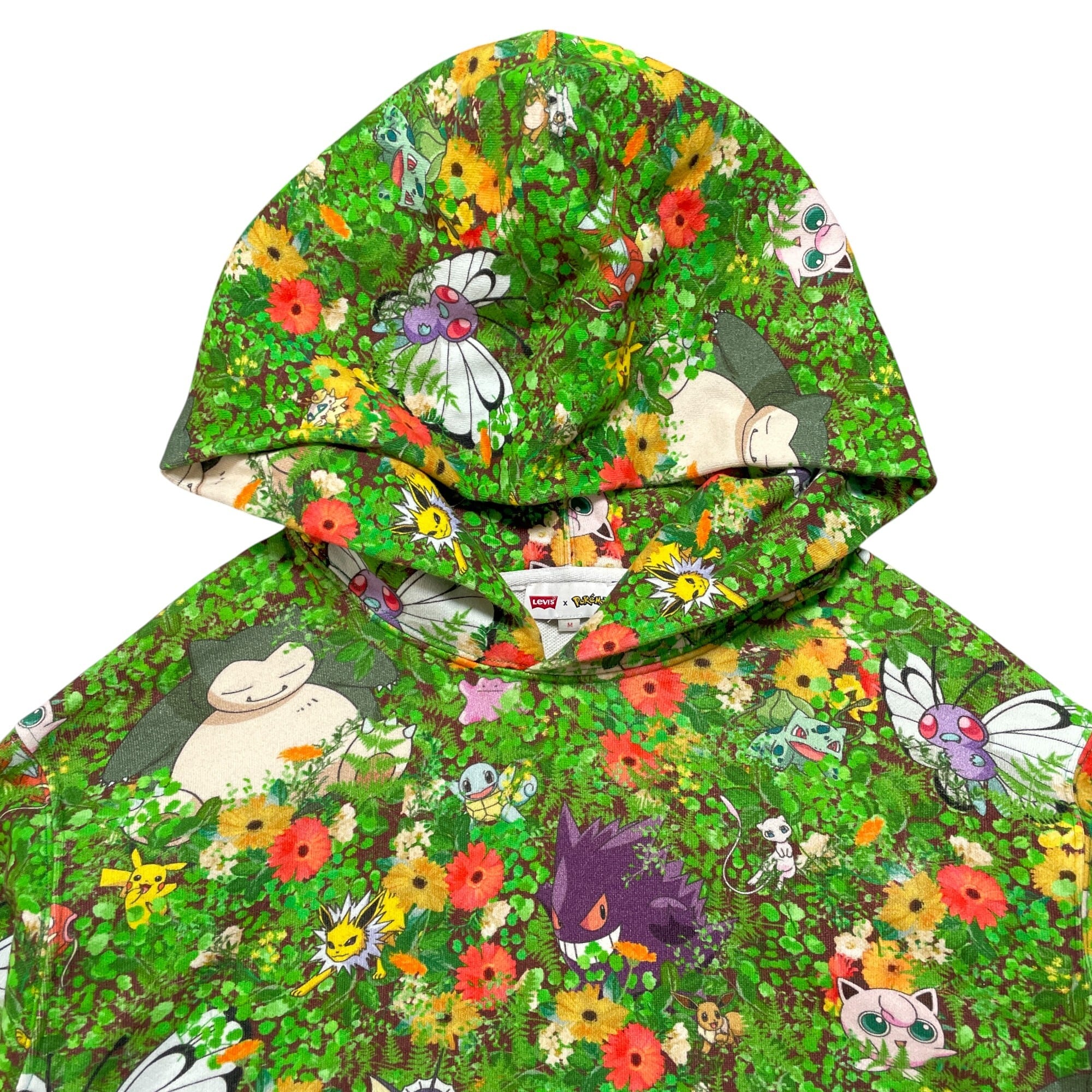 古着 ポケモン 25周年記念限定 Levi's リーバイス コラボ スウェット パーカ 総柄 メンズM マルチカラー フーディーBE0797