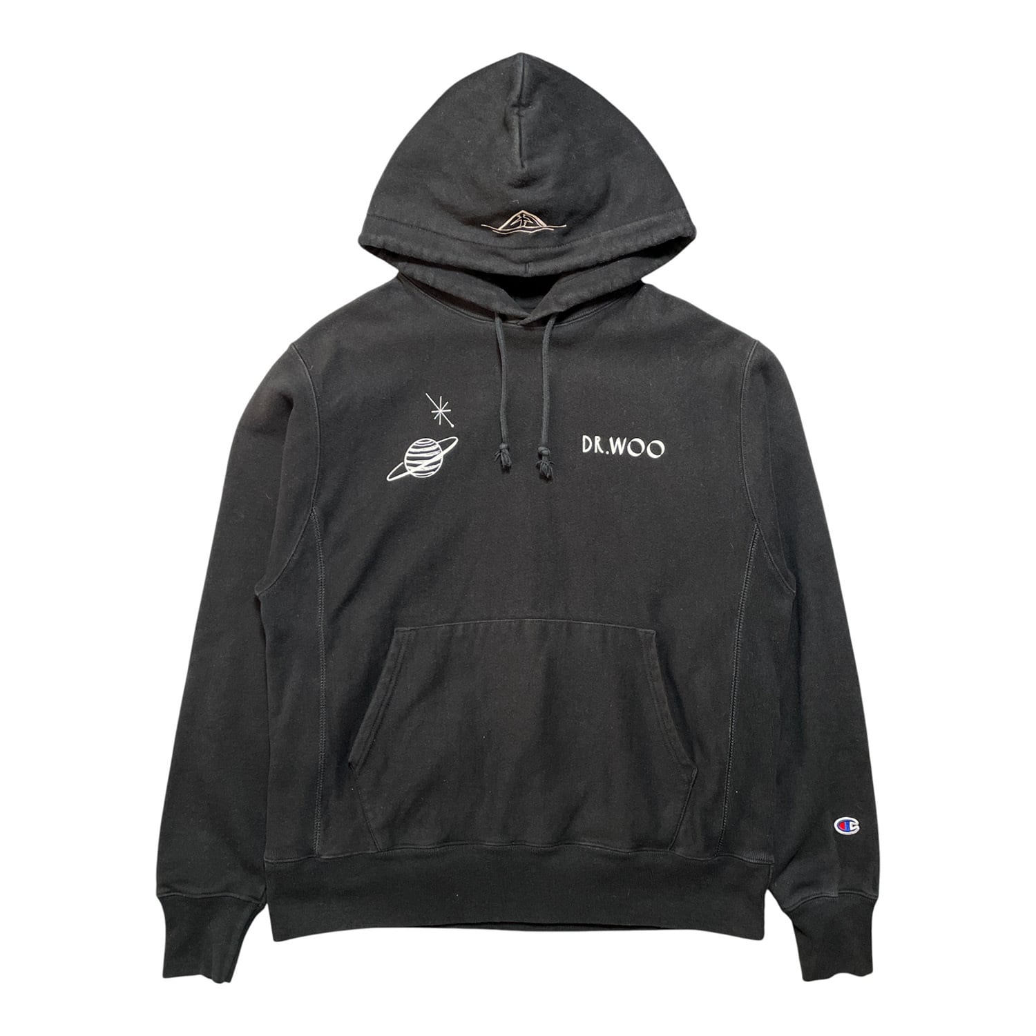 USA 古着 Dr.Woo x ICA コラボ Champion チャンピオン リバースウィーブ スウェットパーカ ブラック メンズM フーディ BE0798