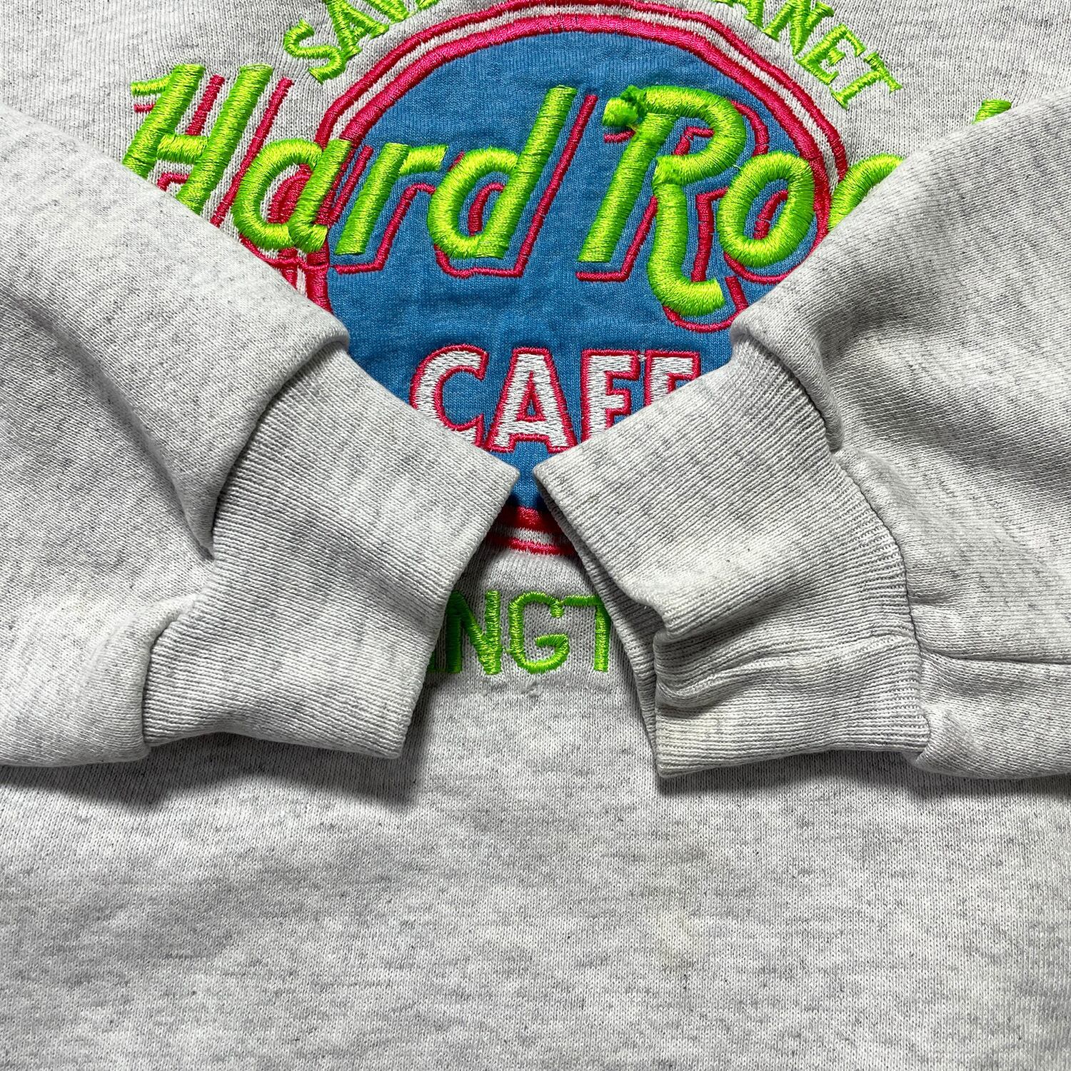 USA 古着 Hard Rock Cafe ハードロックカフェ スウェット トレーナー 刺繍 ロゴ グレー メンズL 相当 クルーネック ヴィンテージ BD2655