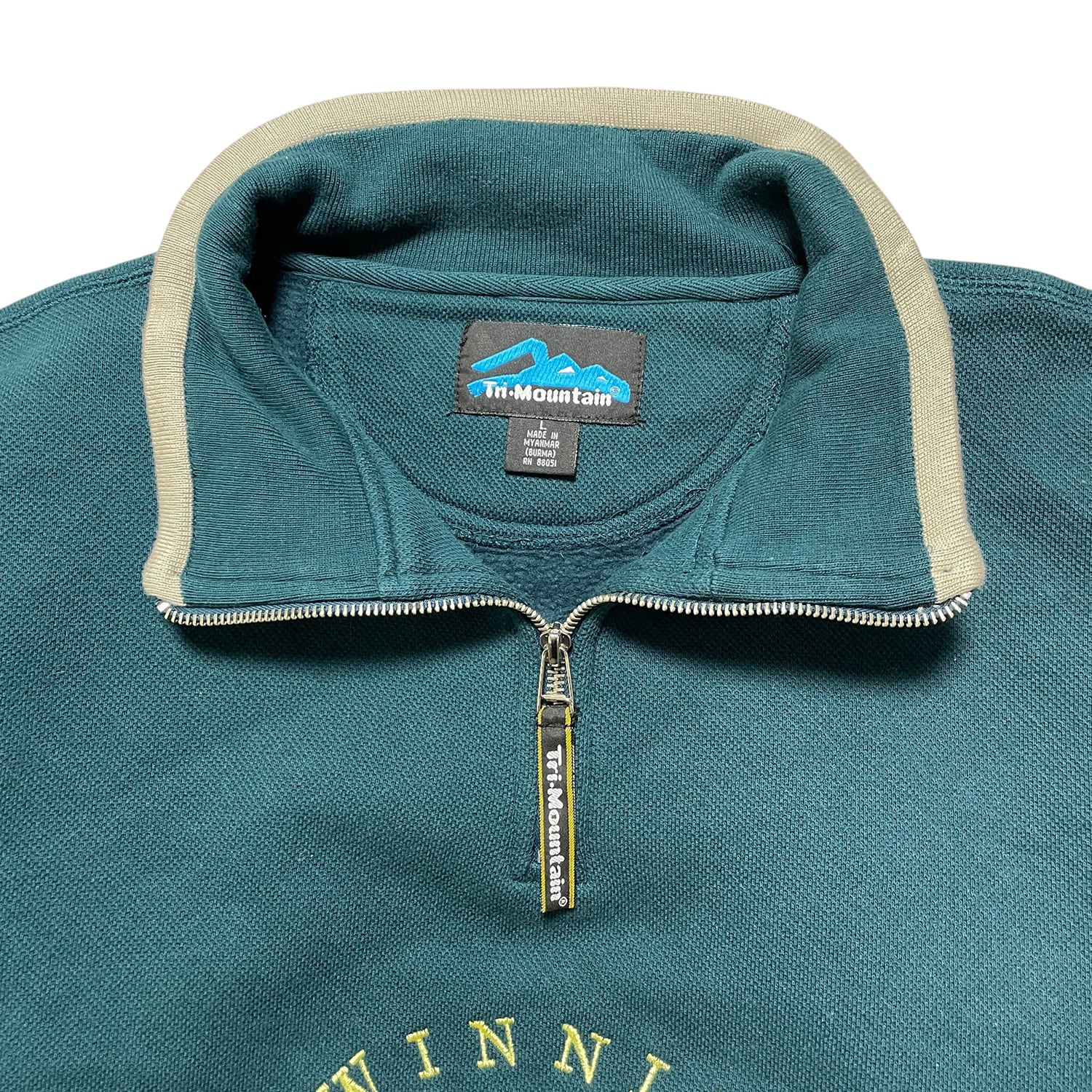 USA 古着 Disney ディズニー くまのプーさん スウェット トレーナー 刺繍 グリーン メンズL ハーフジップ キャラクター BD2587