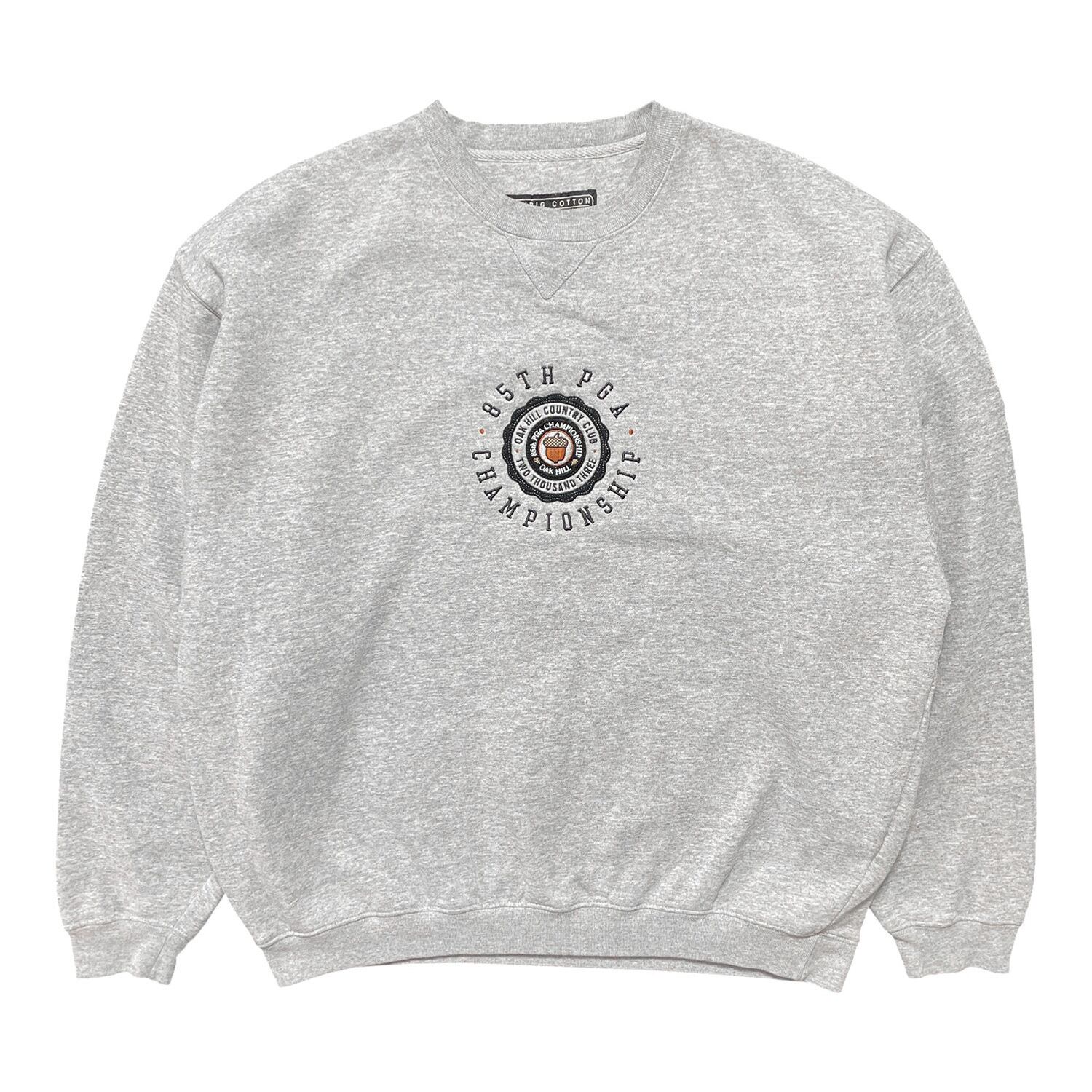 USA 古着 ヴィンテージ ゴルフ PGAチャンピオンシップ 前V スウェット トレーナー どんぐり 刺繍 グレー メンズL クルーネック BD2653
