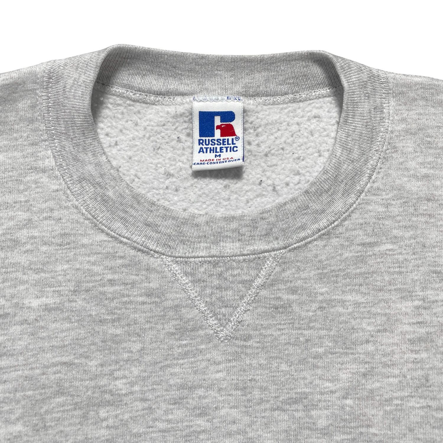 古着 USA製 90S ヴィンテージ RUSSEL ラッセル 前V 無地 スウェット トレーナー グレー メンズM クルーネック BD2654