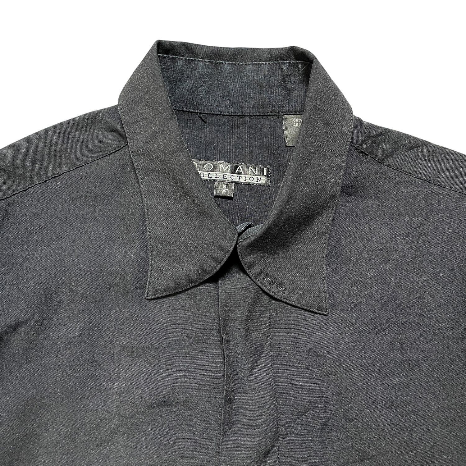 USA 古着 ヴィンテージ DOMANI ドマーニ コレクション レーヨン/ポリ ブラック ドレスシャツ 長袖シャツ メンズS 黒色 無地 BG0925
