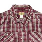USA 古着 HABAND TRAVELERS ヴィンテージ ポリ/コットン チェック柄 長袖シャツ ウエスタンシャツ メンズL マルーン系 BG0926