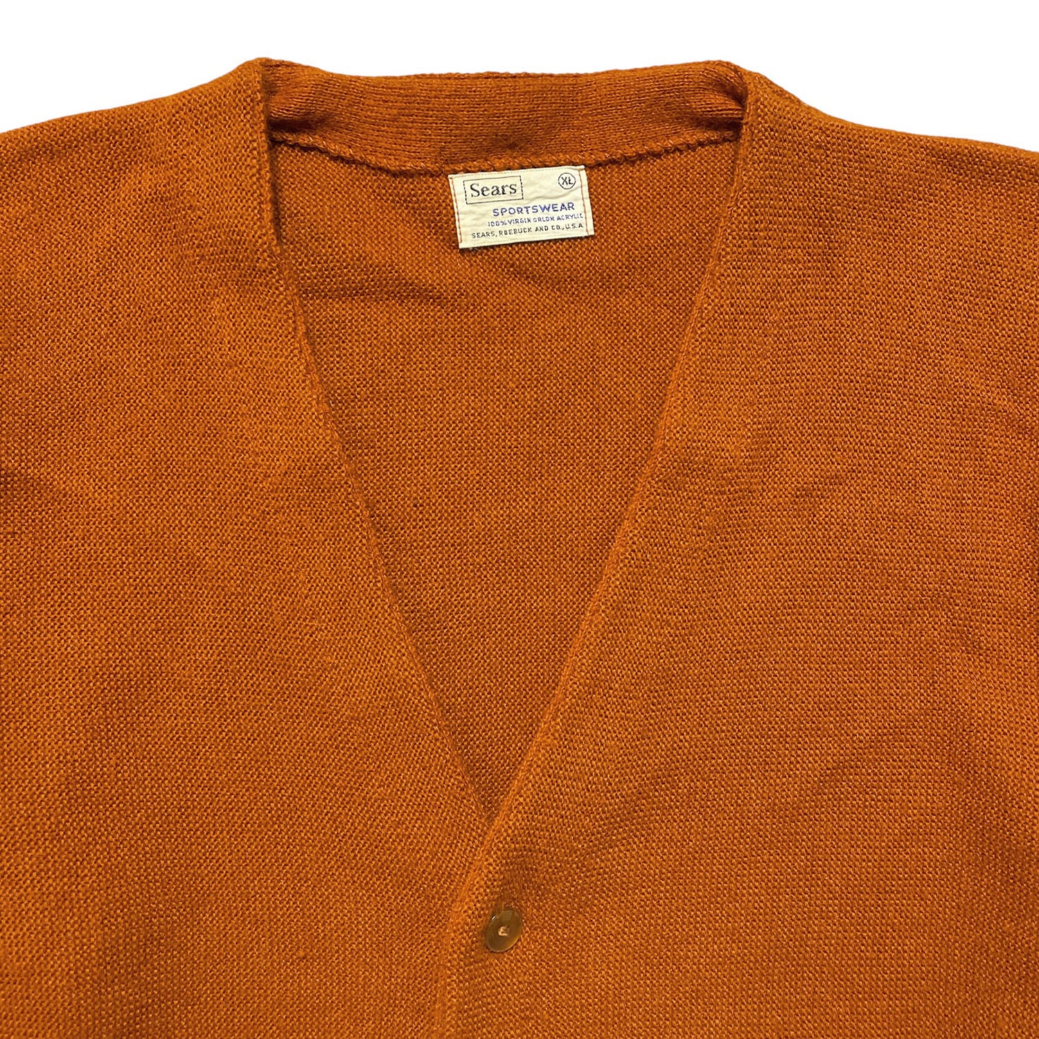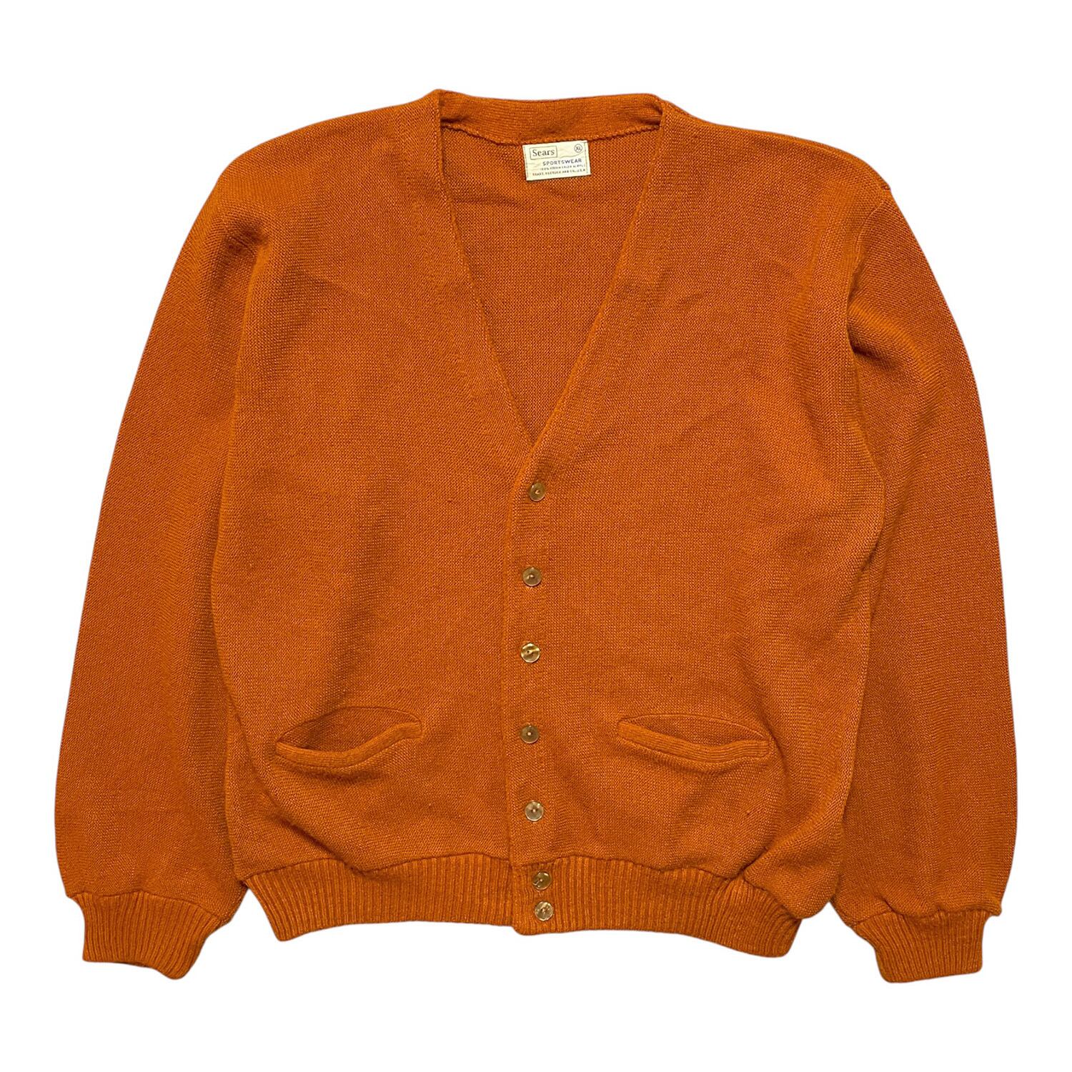USA 古着 70S Sears シアーズ ヴィンテージ アクリルニット カーディガン 無地 茶褐色系 メンズXL BH0348