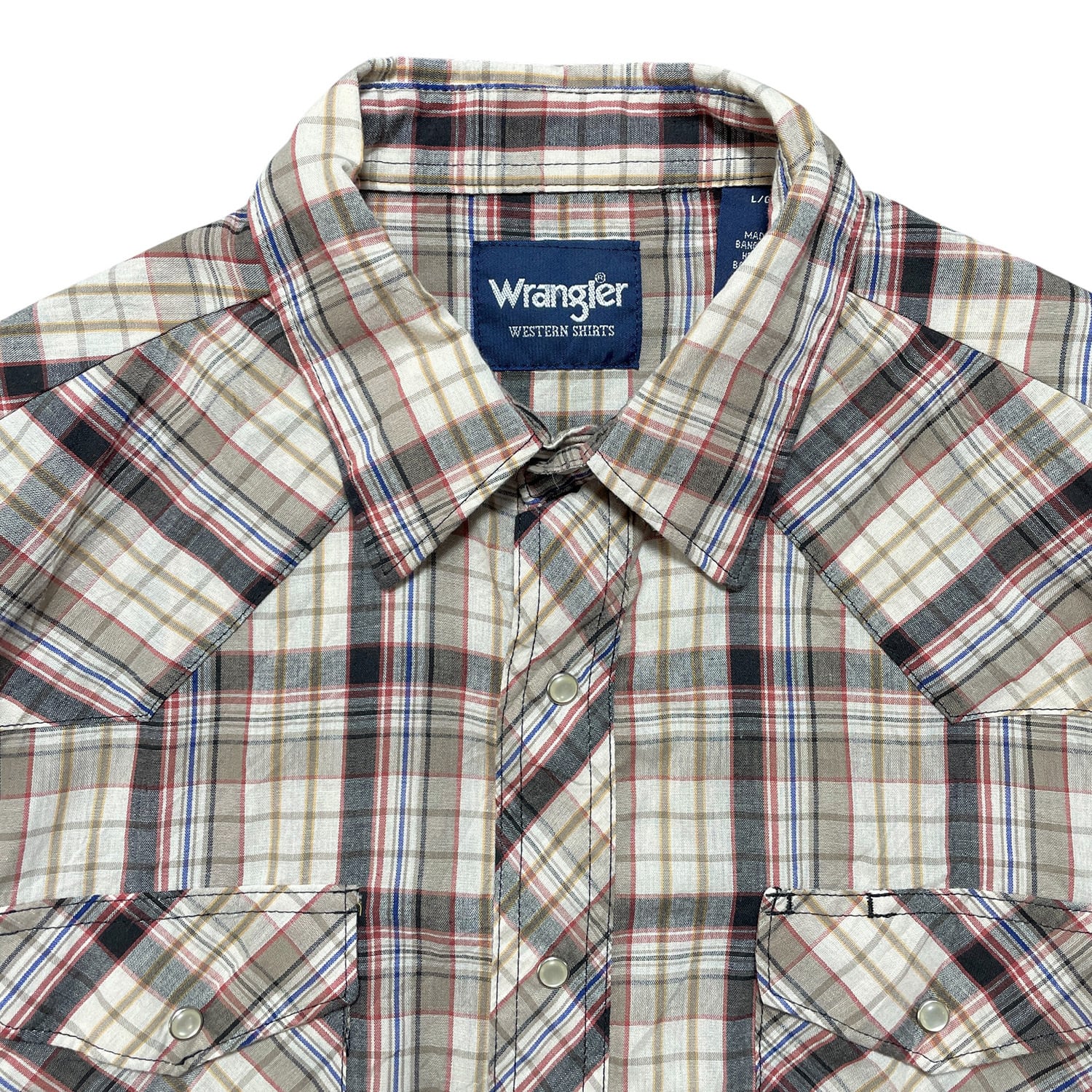 USA 古着 Wrangler ラングラー チェック柄 ウエスタンシャツ 長袖シャツ メンズL ベージュ系 ヴィンテージ BG0928