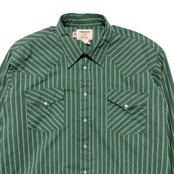USA 古着 USA製 90S RUD DOCK ヴィンテージ ストライプ柄 ウエスタンシャツ 長袖シャツ メンズXL相当 グリーン BG0932