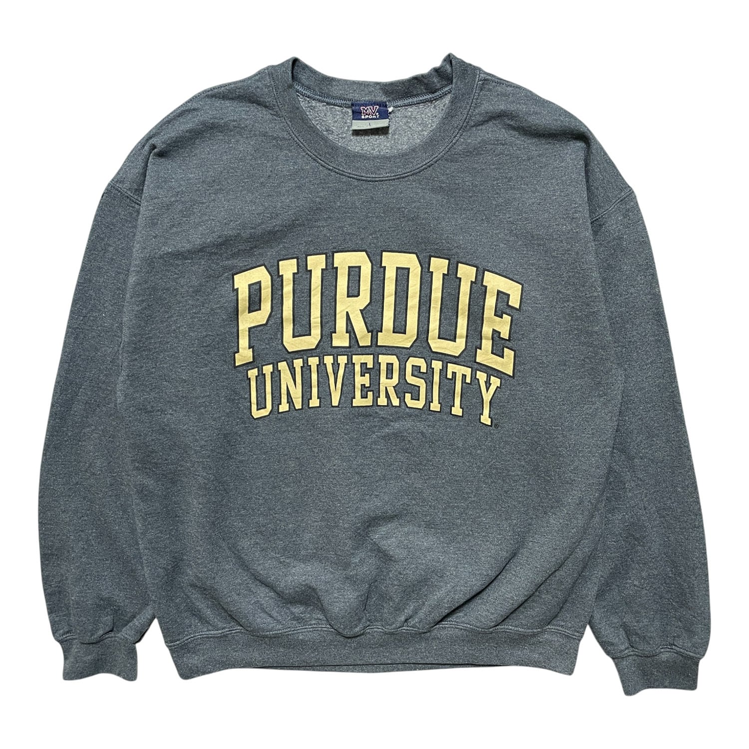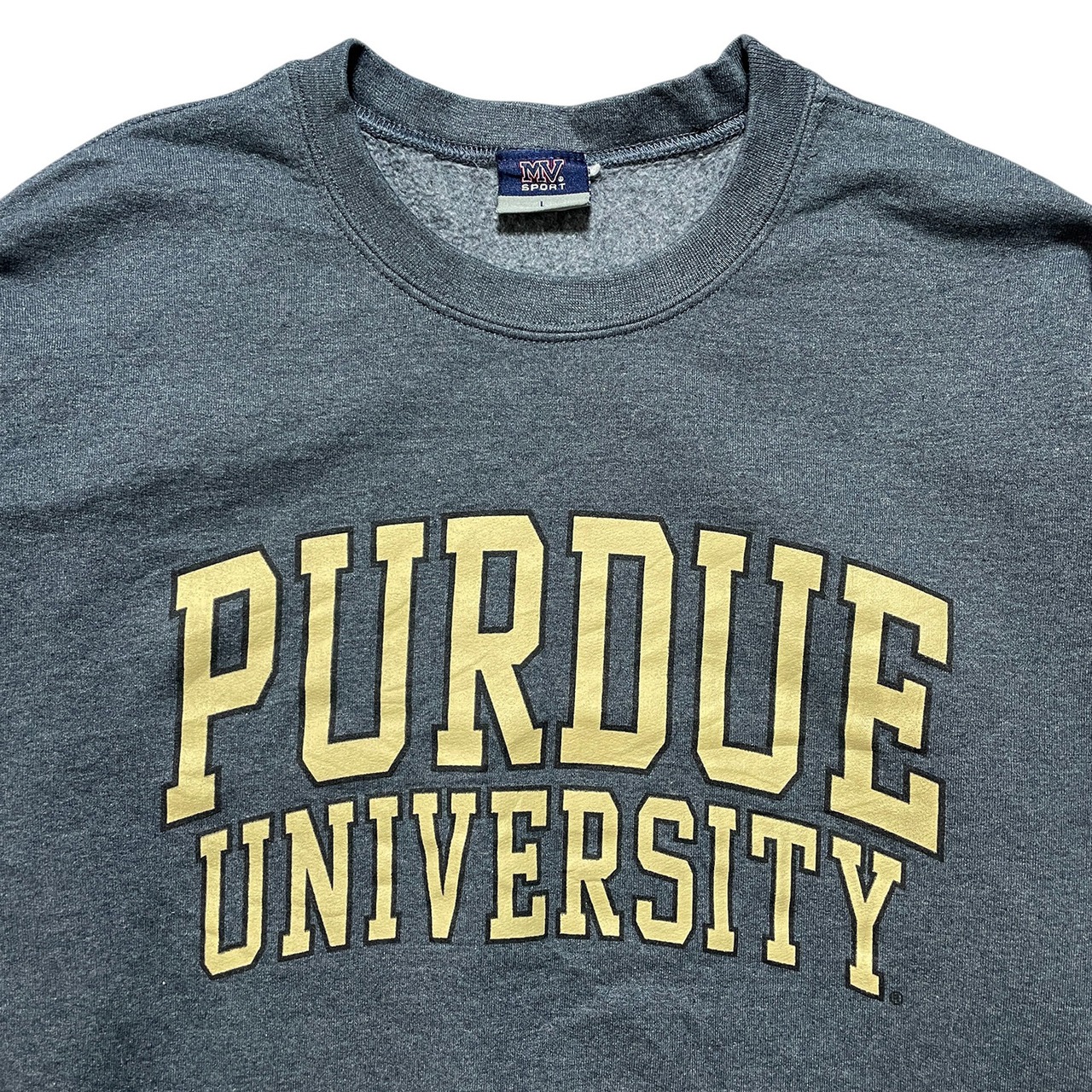 USA 古着 パデュー大学 カレッジ スウェット トレーナー ロゴ プリント チャコールグレー メンズL クルーネック BD2595