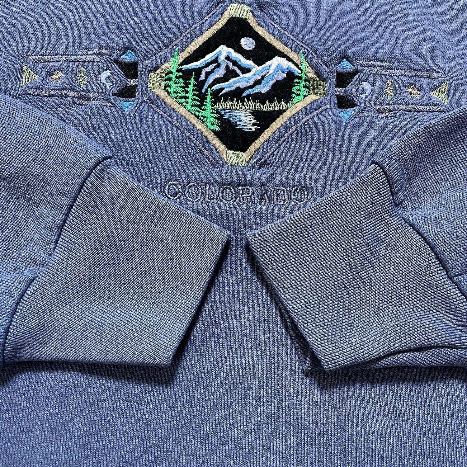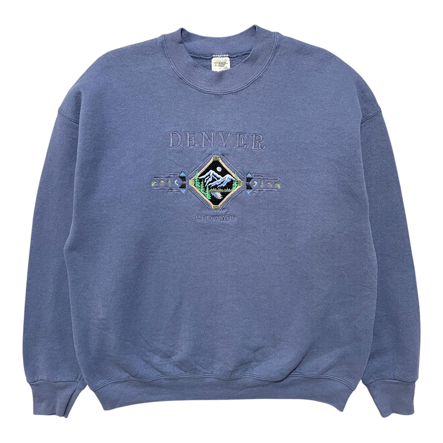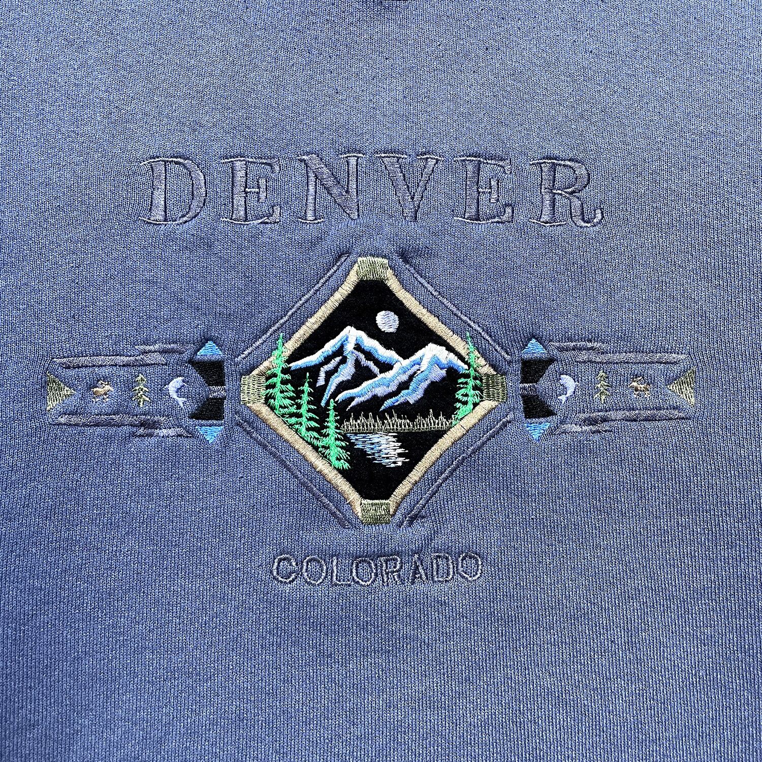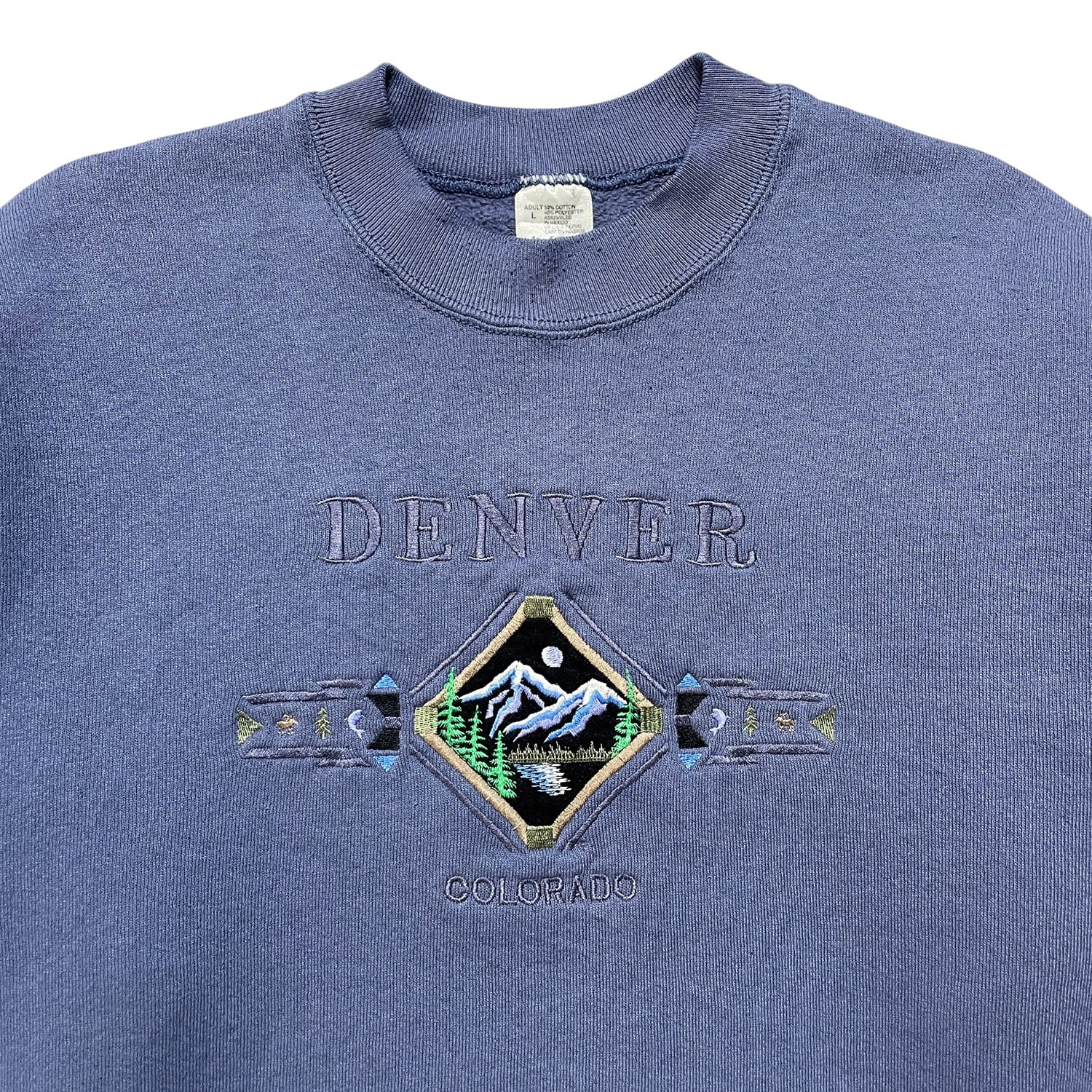 USA 古着 メキシコ製 90S コロラド州 デンバー スウェット トレーナー 刺繍 ネイビー メンズL クルーネック BD2599