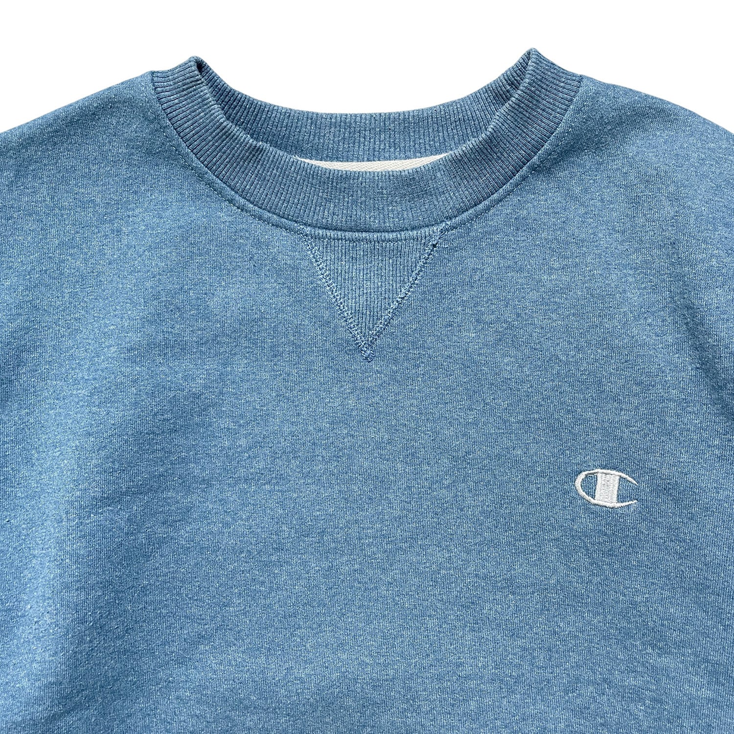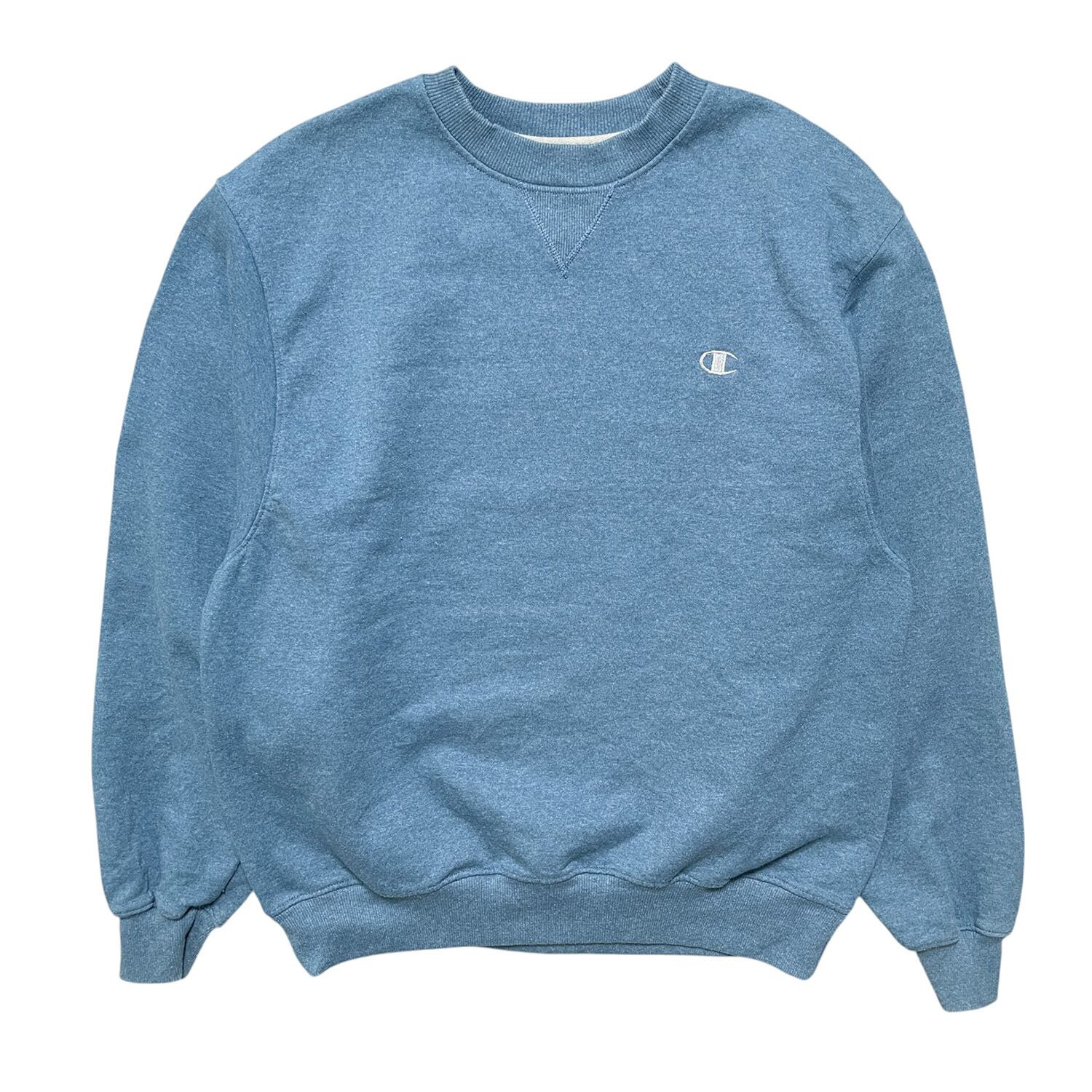 USA 古着 Champion チャンピオン 前V スウェット トレーナー 刺繍 ロゴ ブルー メンズL クルーネック BD2600