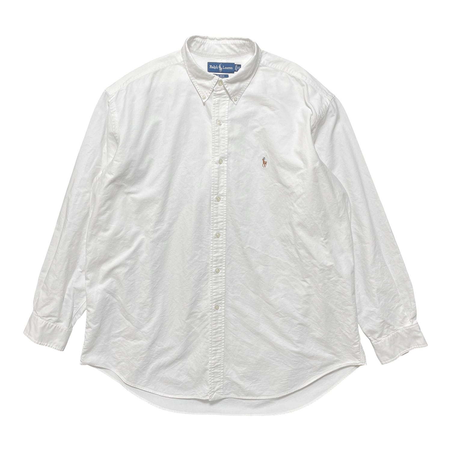 USA 古着 Ralph Lauren ラルフローレン オックスフォードコットン 長袖シャツ BDシャツ 白シャツ ホワイト メンズXL BG0938