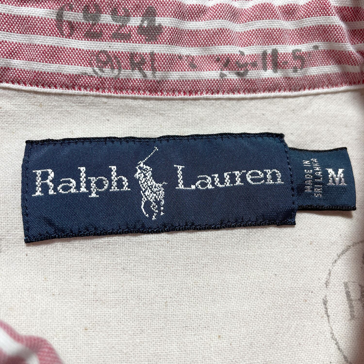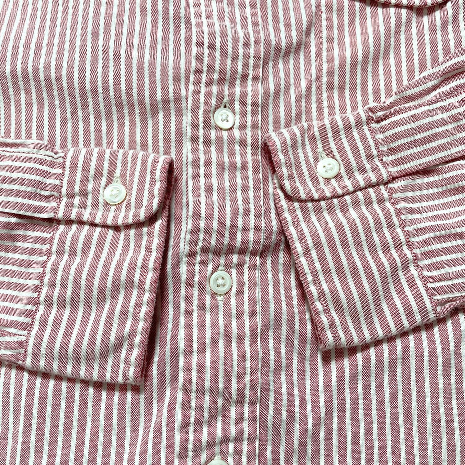 USA 古着 Ralph Lauren ラルフローレン オックスフォード コットン ストライプ柄 長袖シャツ BDシャツ メンズM レッド系 BG0949
