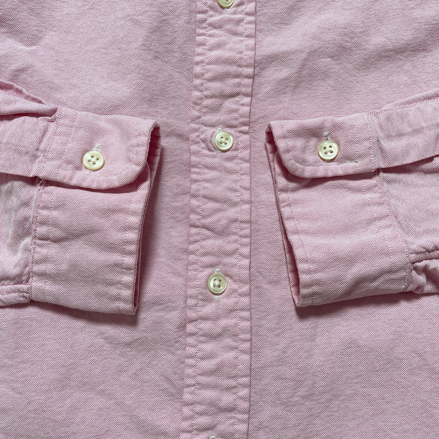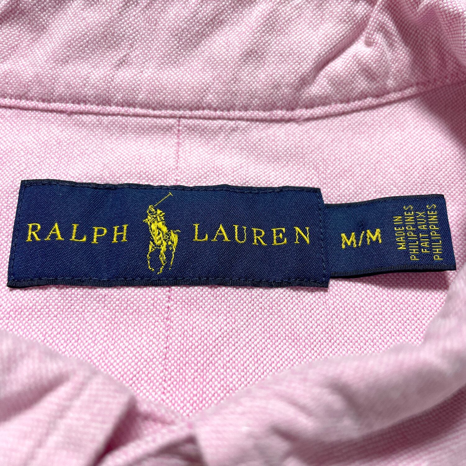 USA 古着 Ralph Lauren ラルフローレン オックスフォード コットン BDシャツ 長袖シャツ メンズM ピンク BG0950