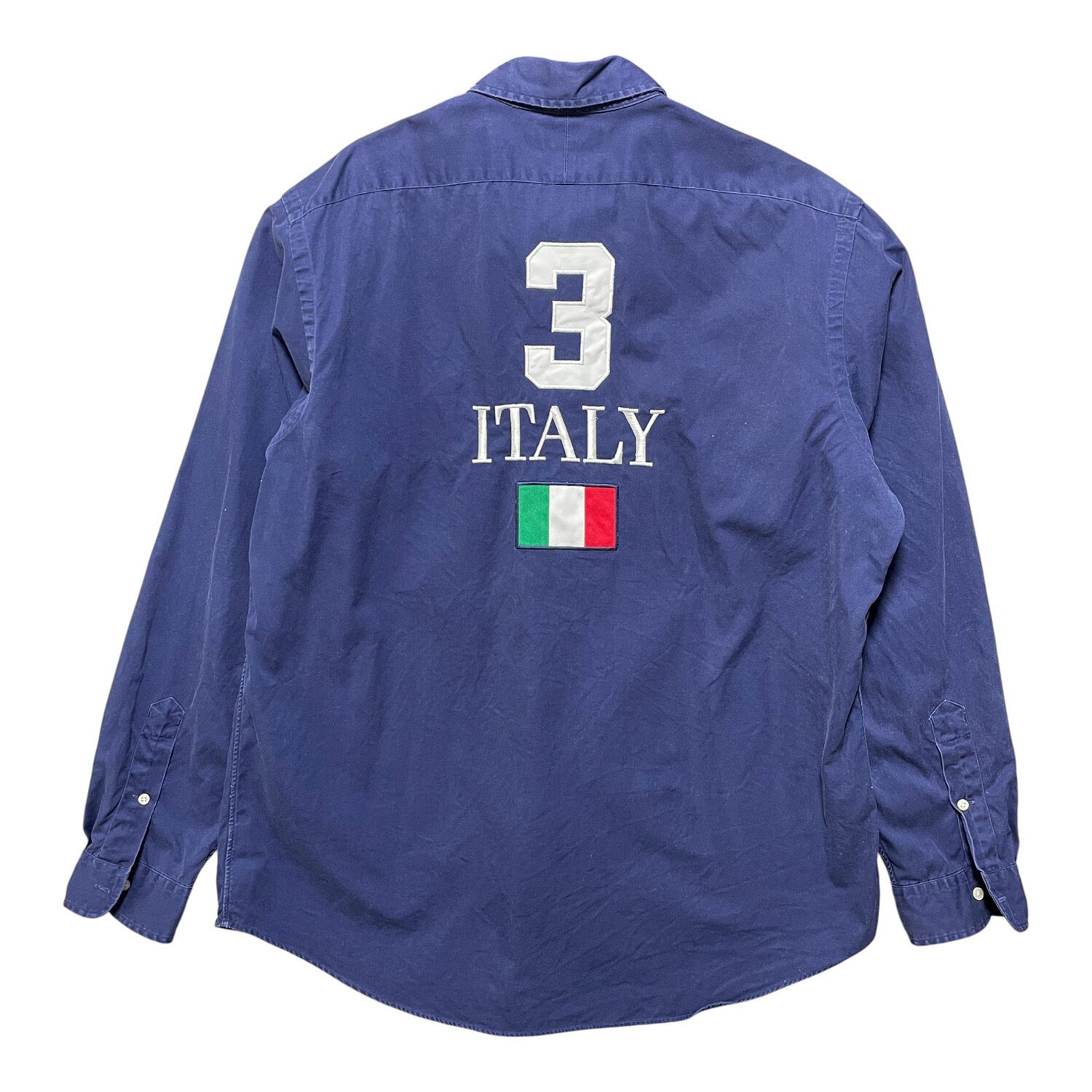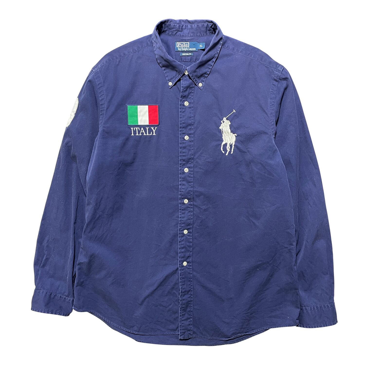 USA 古着 Polo by Ralph Lauren ポロ バイ ラルフローレン コットン ビッグポニー イタリア 長袖シャツ ネイビー メンズXL 紺色 BG0956