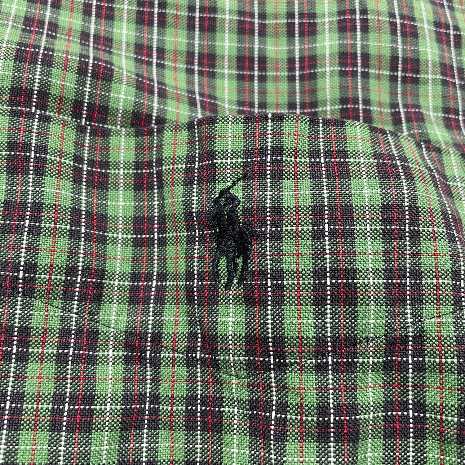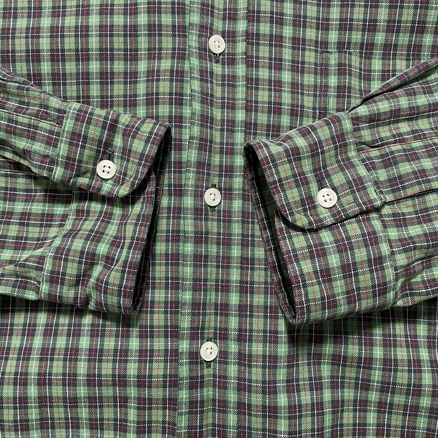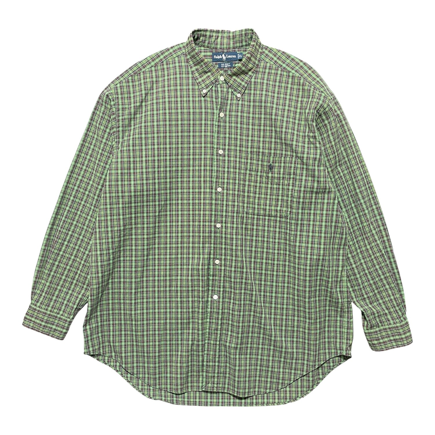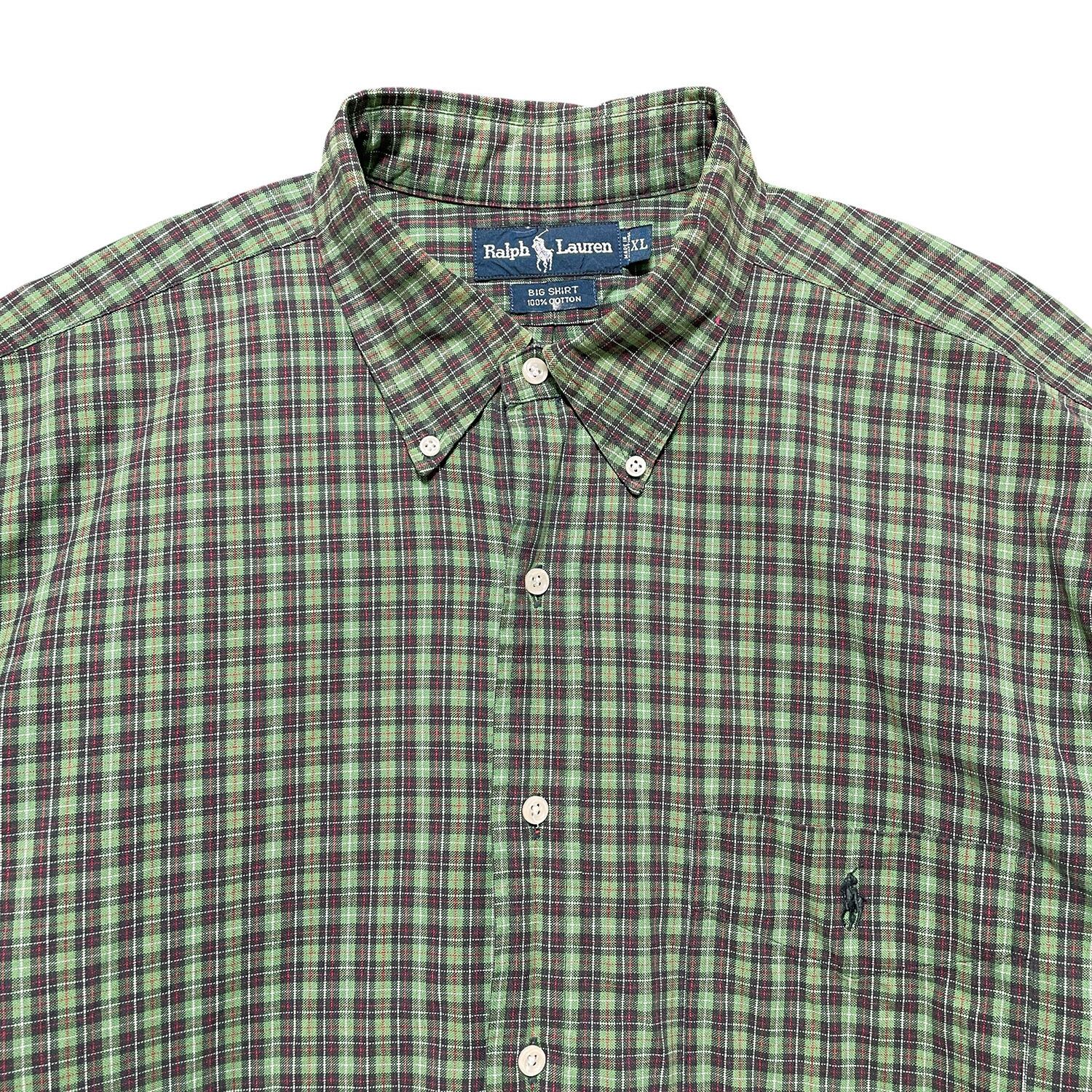 USA 古着 Ralph Lauren BIG SHIRT ラルフローレン ビッグシャツ コットン チェック柄 長袖シャツ メンズXL グリーン 緑色 BG0957