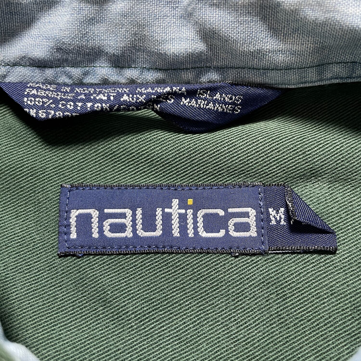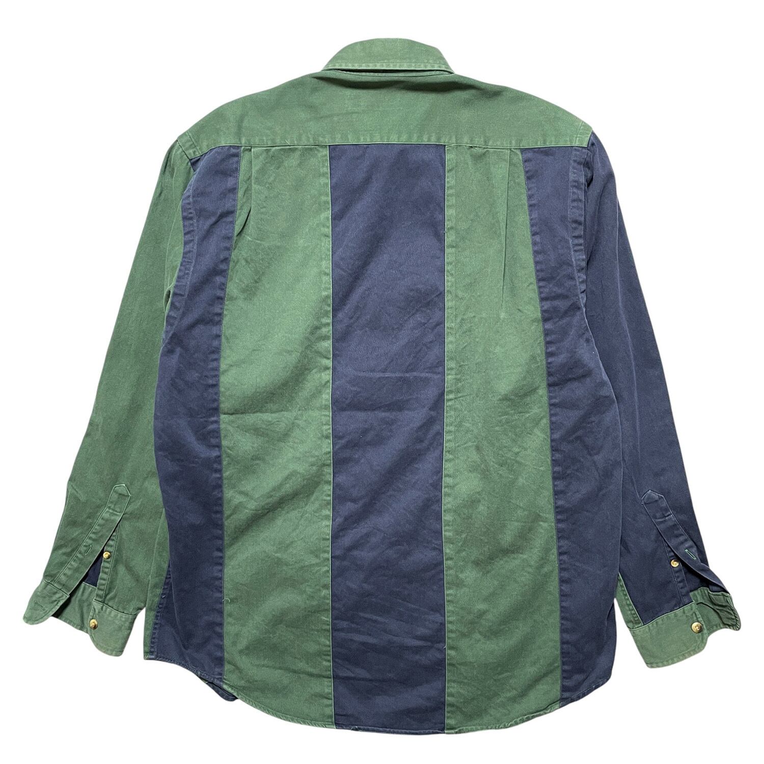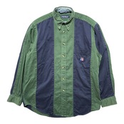 USA 古着 90S NAUTICA ヴィンテージ オールド ノーティカ コットン ワイドストライプ BDシャツ 長袖シャツ メンズM グリーン BG0960