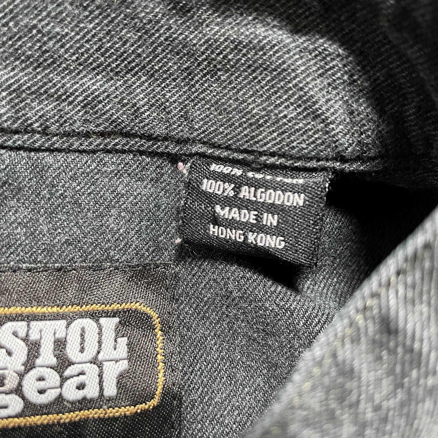 USA 古着 RESISTOL RODE GEAR ヴィンテージ コットン ブラックデニム スタンドカラー 長袖シャツ メンズM BG0964