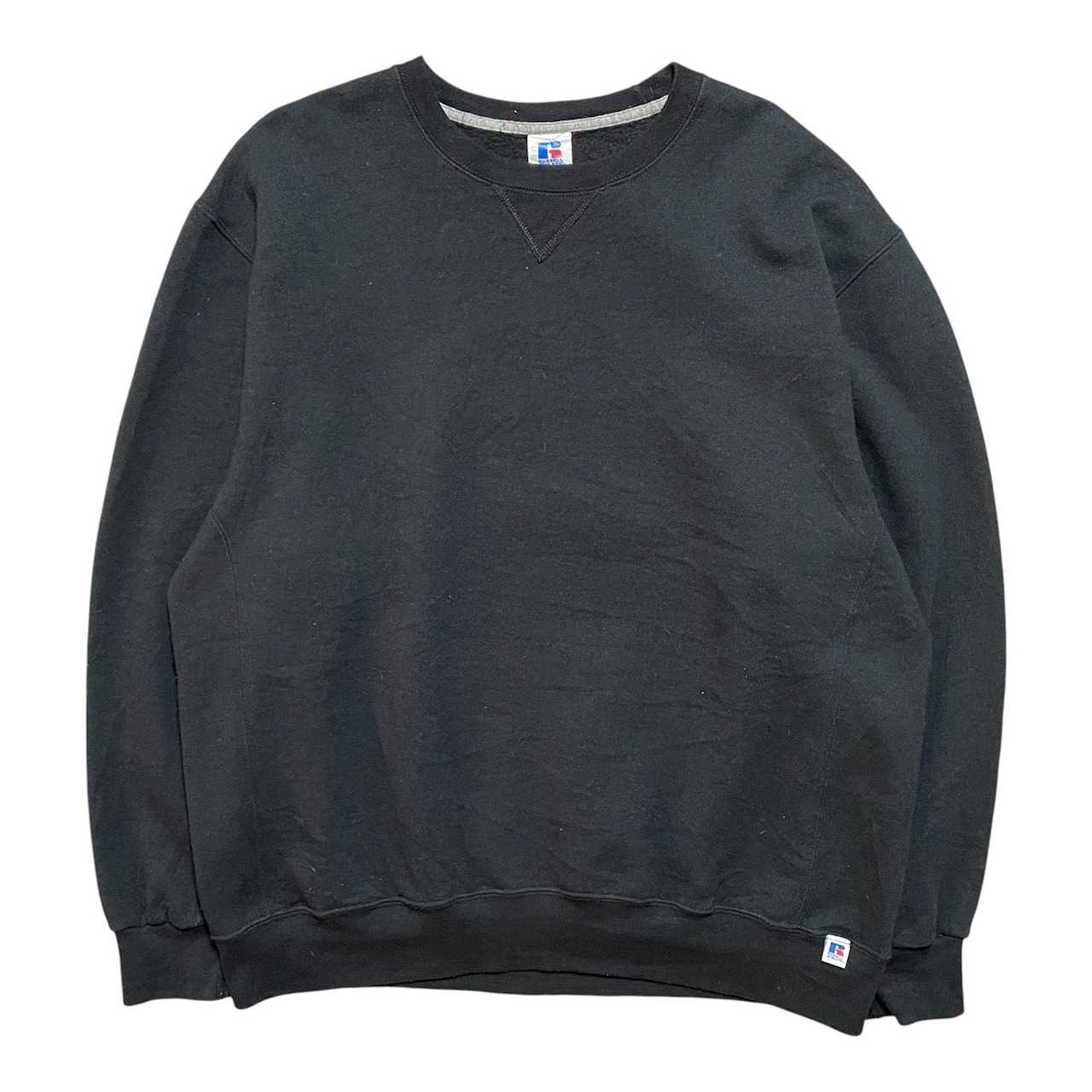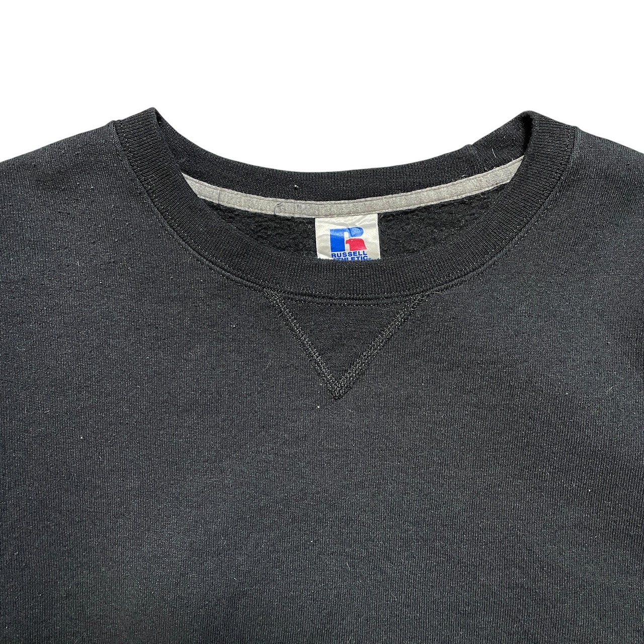 USA 古着 RUSSELL ラッセル 無地 前V スウェット トレーナー ブラック ブランク メンズXL クルーネック BD2615