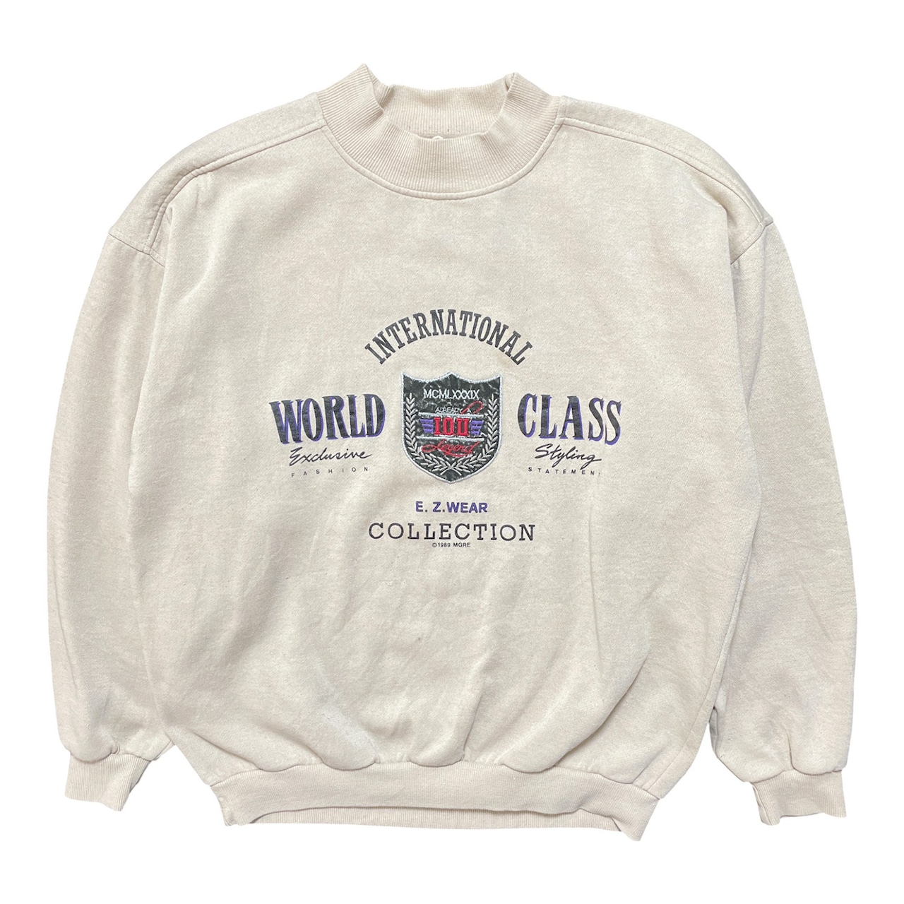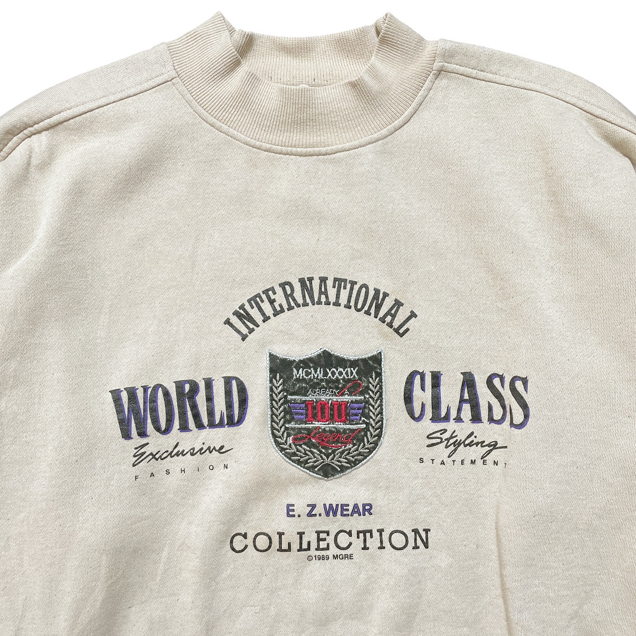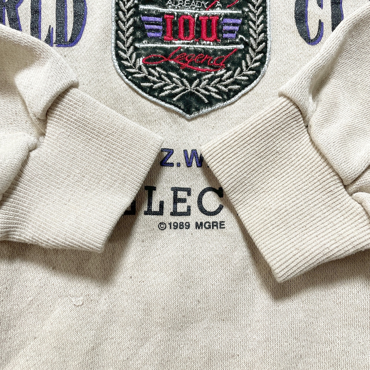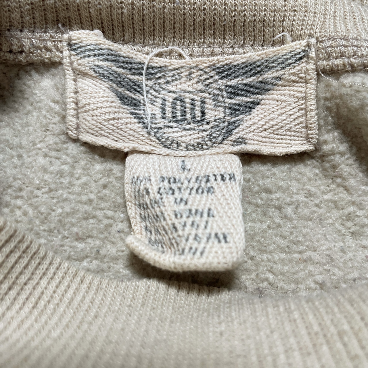 古着 USA製 80S ヴィンテージ スウェット トレーナー プリント ベージュ メンズL モックネック BD2609