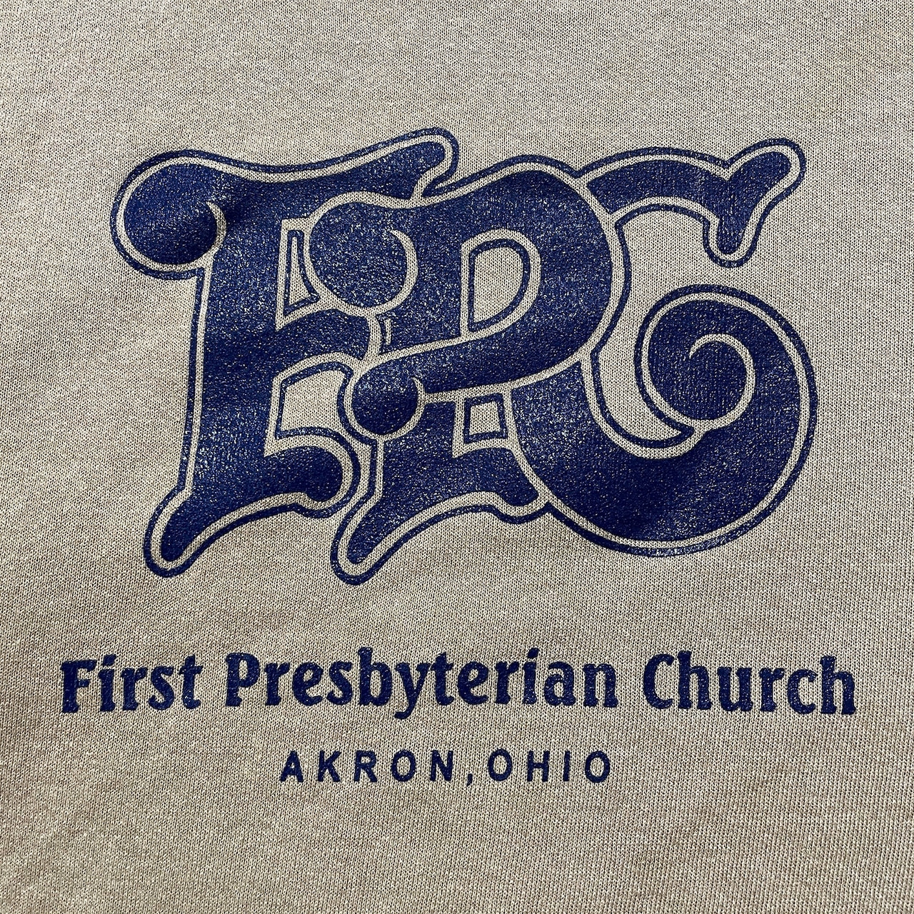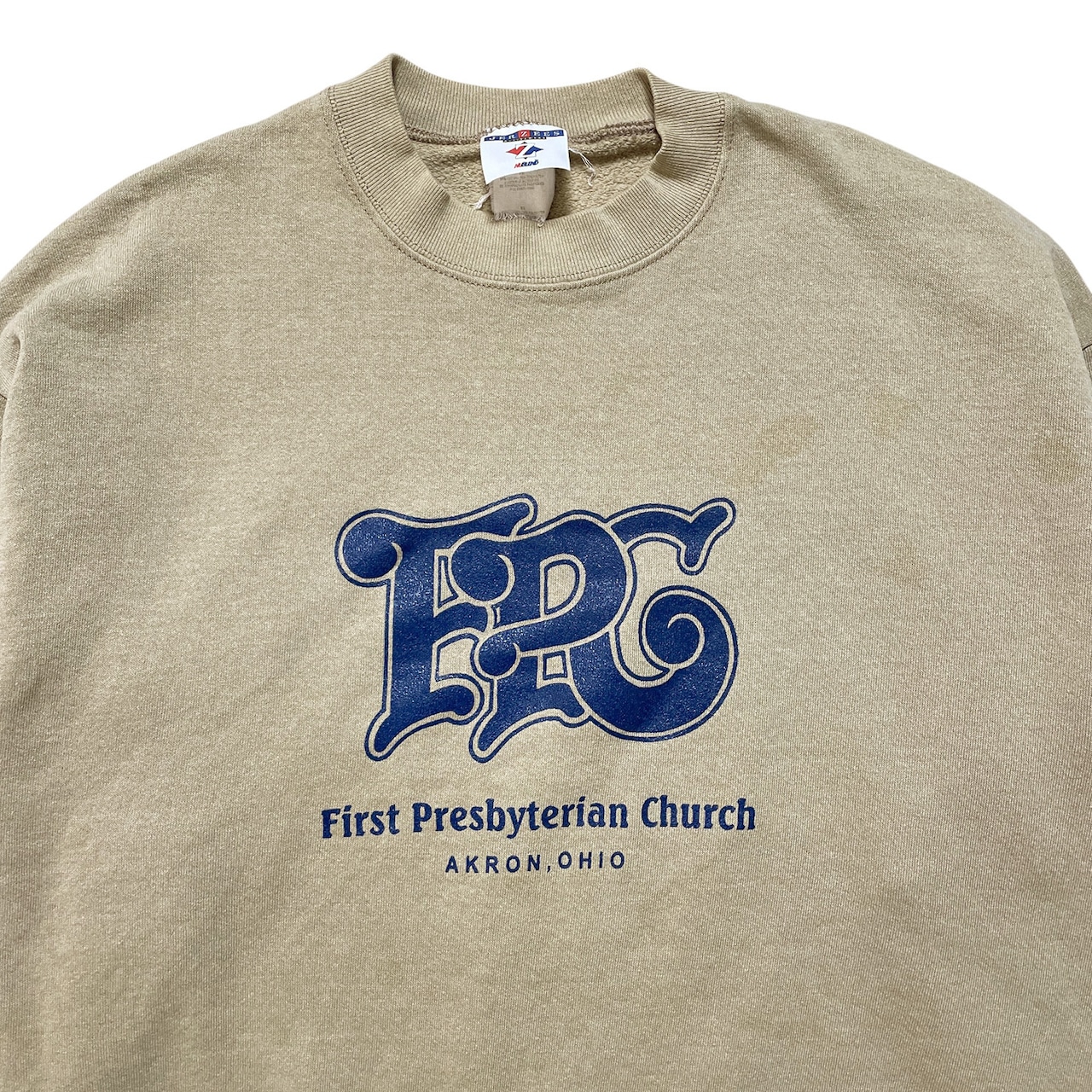 USA 古着 長老派教会 チャーチ ヴィンテージ スウェット トレーナー プリント ベージュ メンズXL クルーネック BD2610