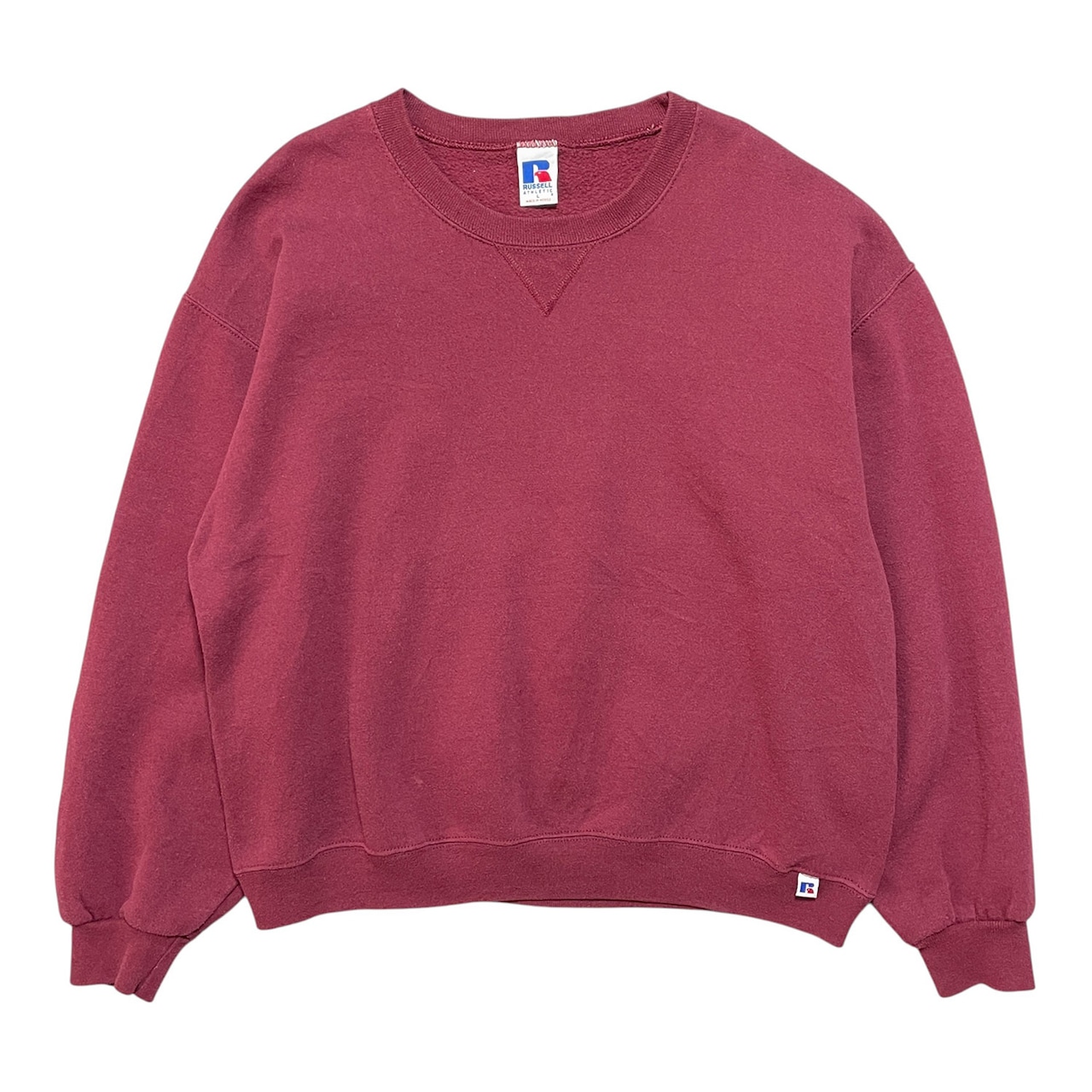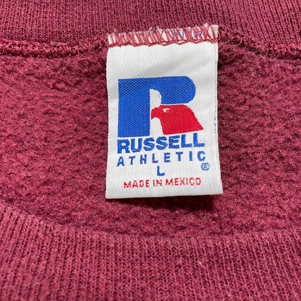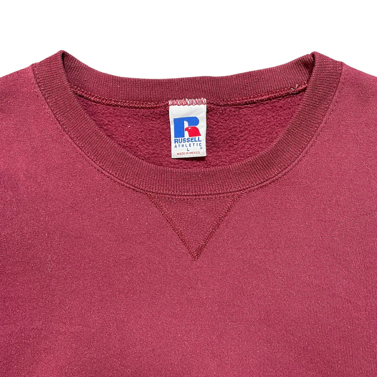 USA 古着 00S 90S メキシコ製 RUSSELL 無地 前V ラッセル スウェット トレーナー ブランク ボルドー メンズL クルーネック BD2612