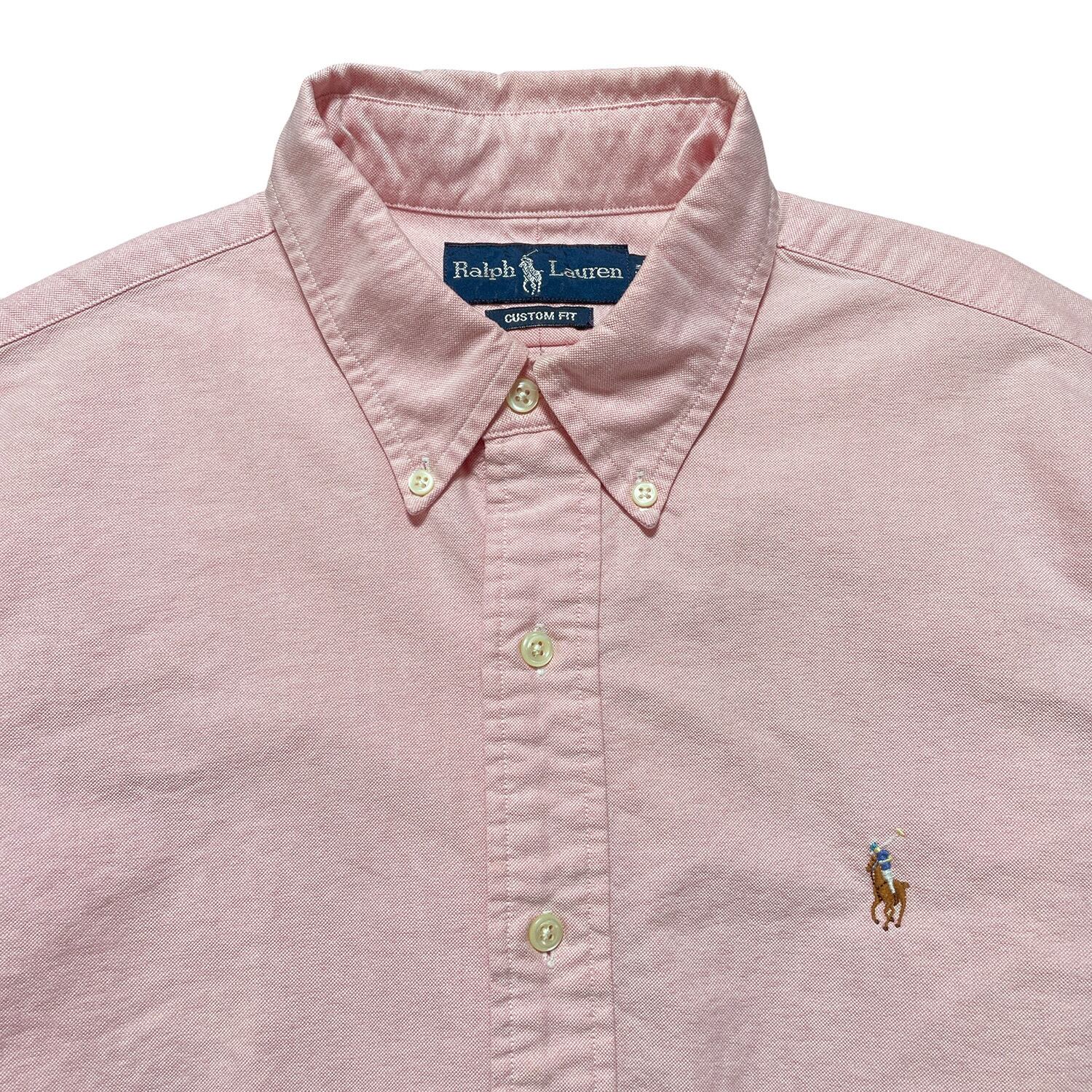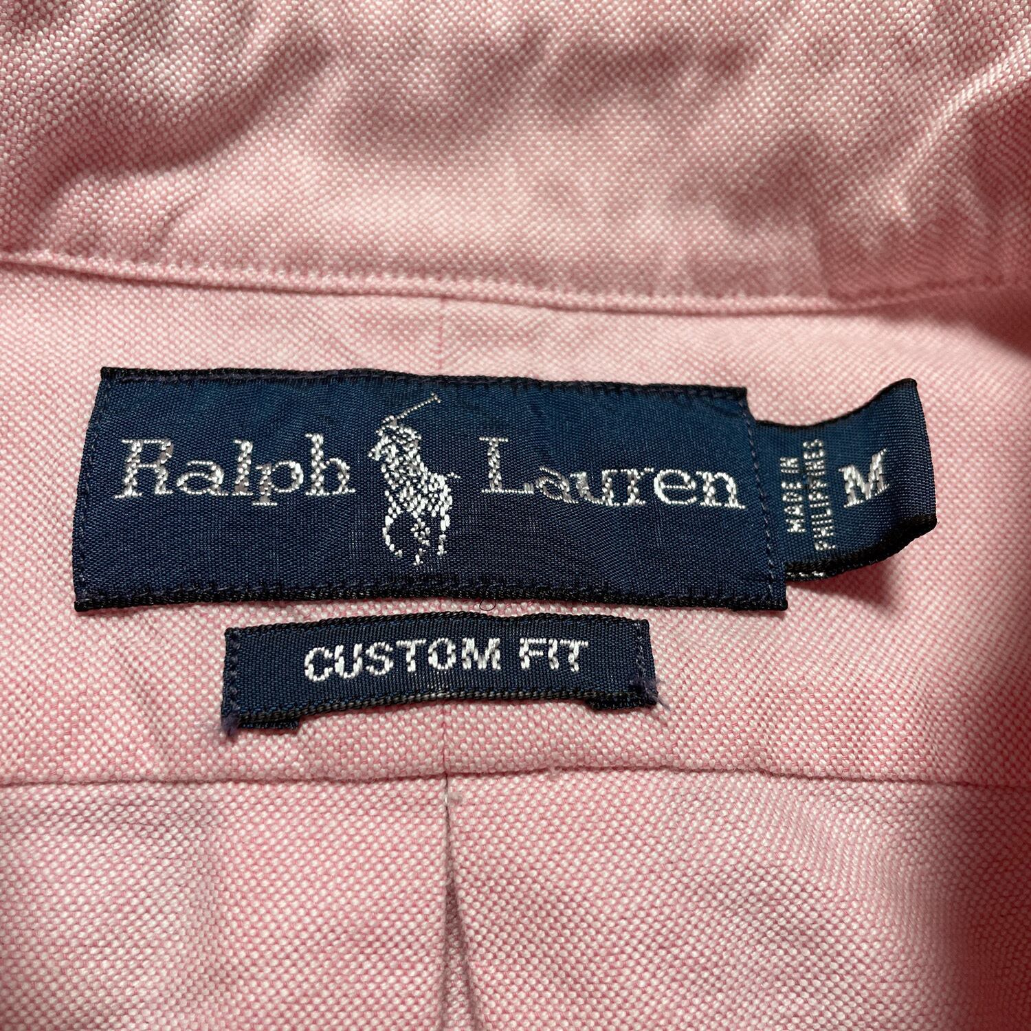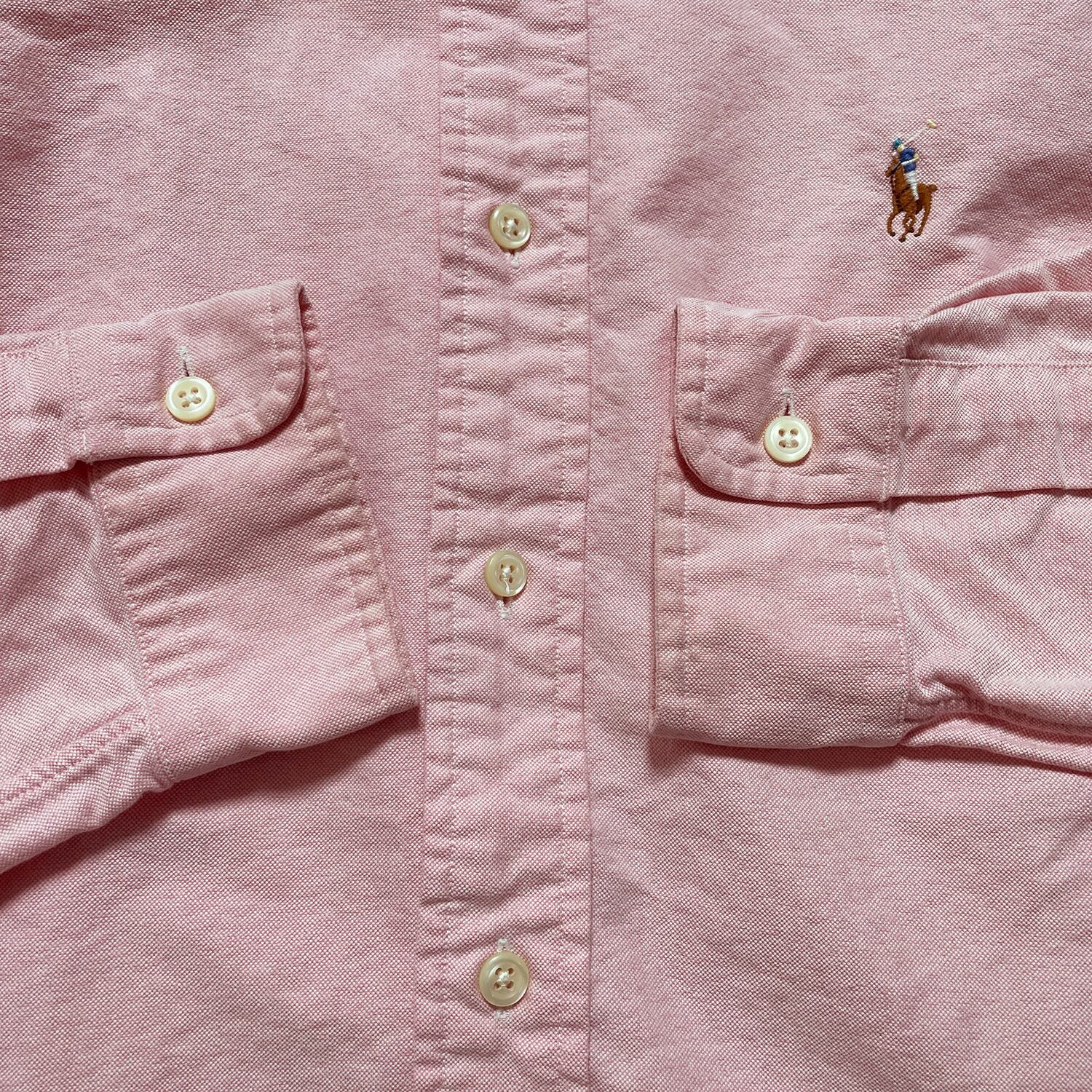 USA 古着 Ralph Lauren ラルフローレン オックスフォード コットン BDシャツ 長袖シャツ ピンク メンズM BG0965