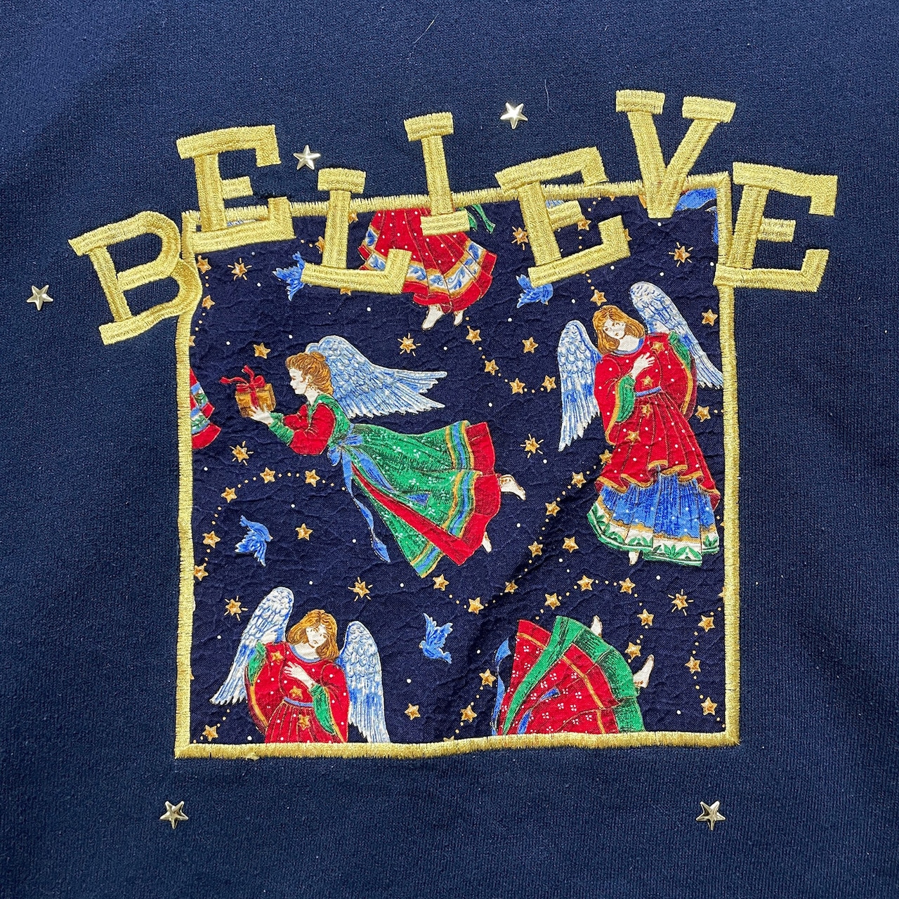 古着 USA製 90S 天使 ヴィンテージ スウェット トレーナー 刺繍 ネイビー メンズ1X クルーネック BD2593