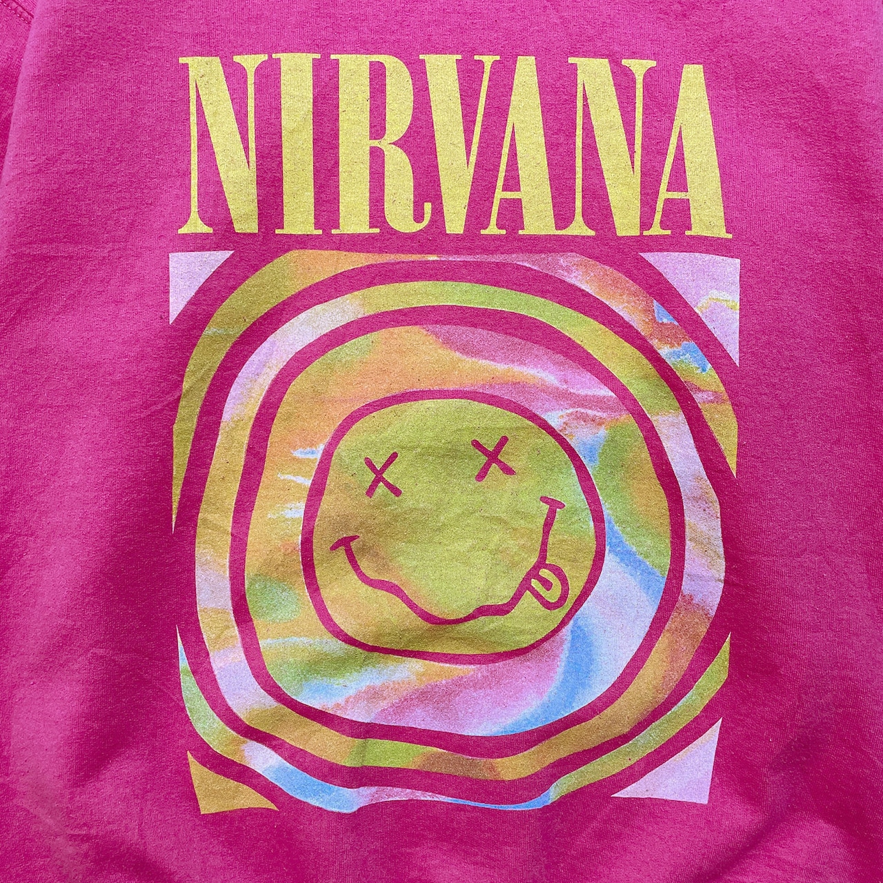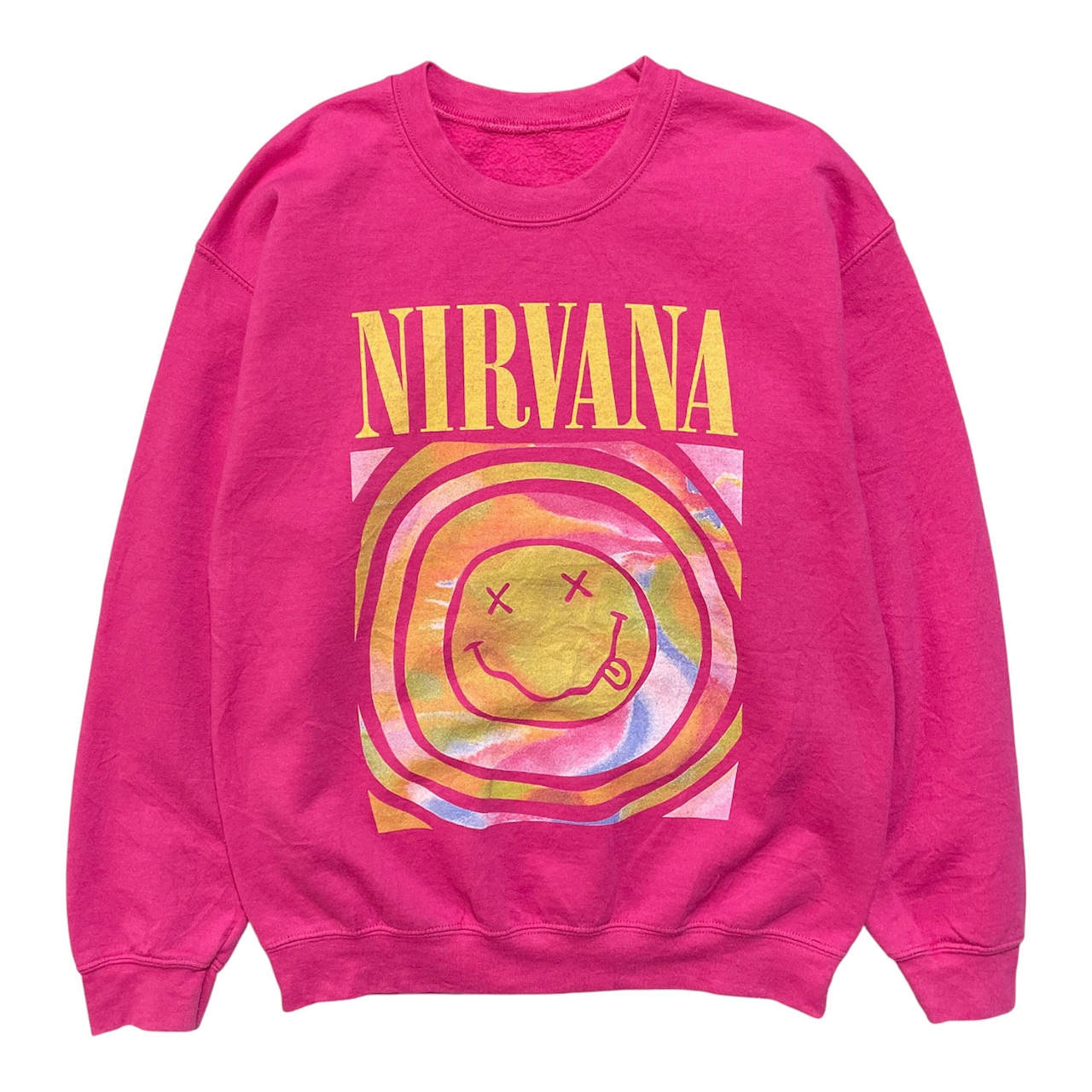 USA 古着 NIRVANA ニルヴァーナ スマイル スウェット トレーナー バンド ロック ピンク クルーネック ニルバーナ BD2613