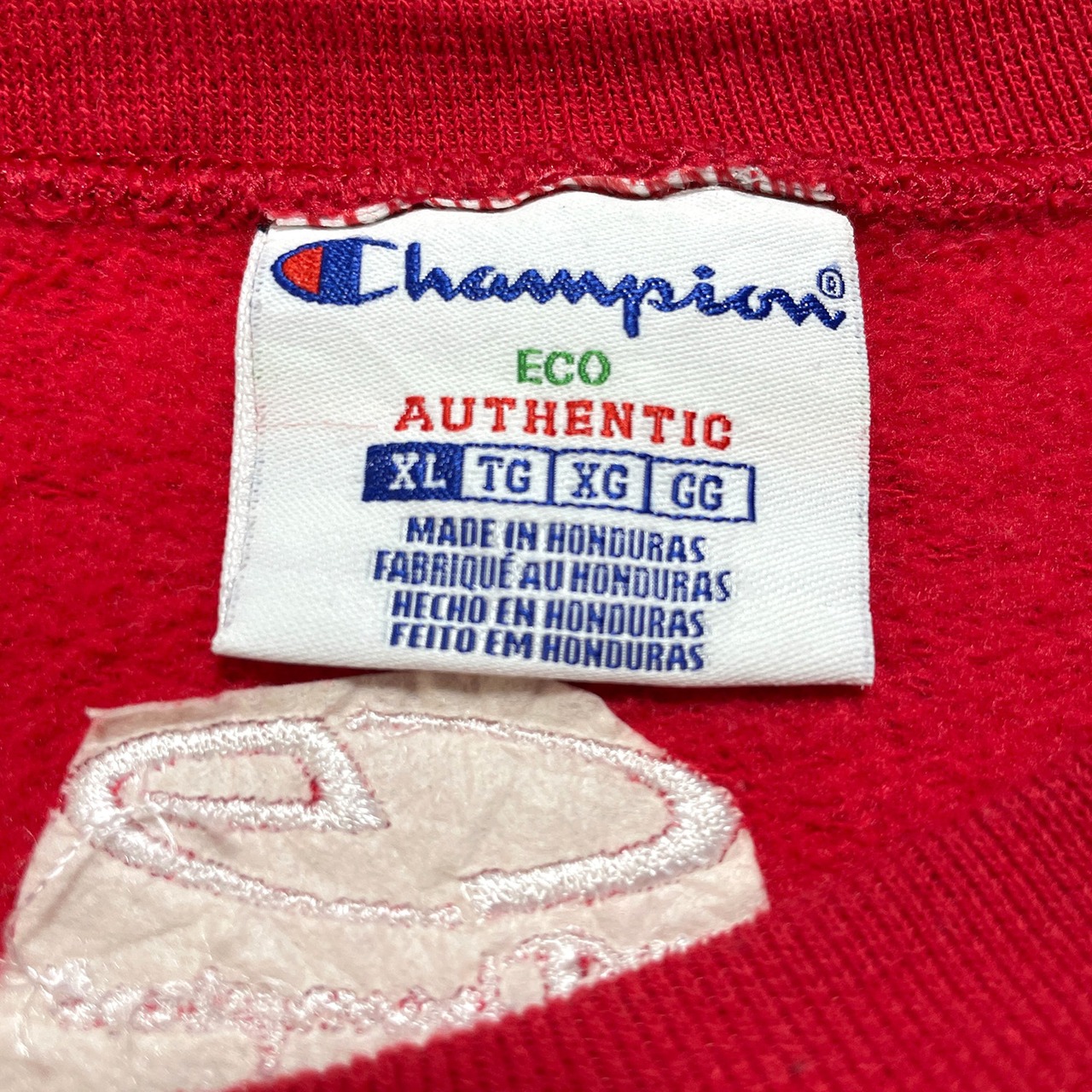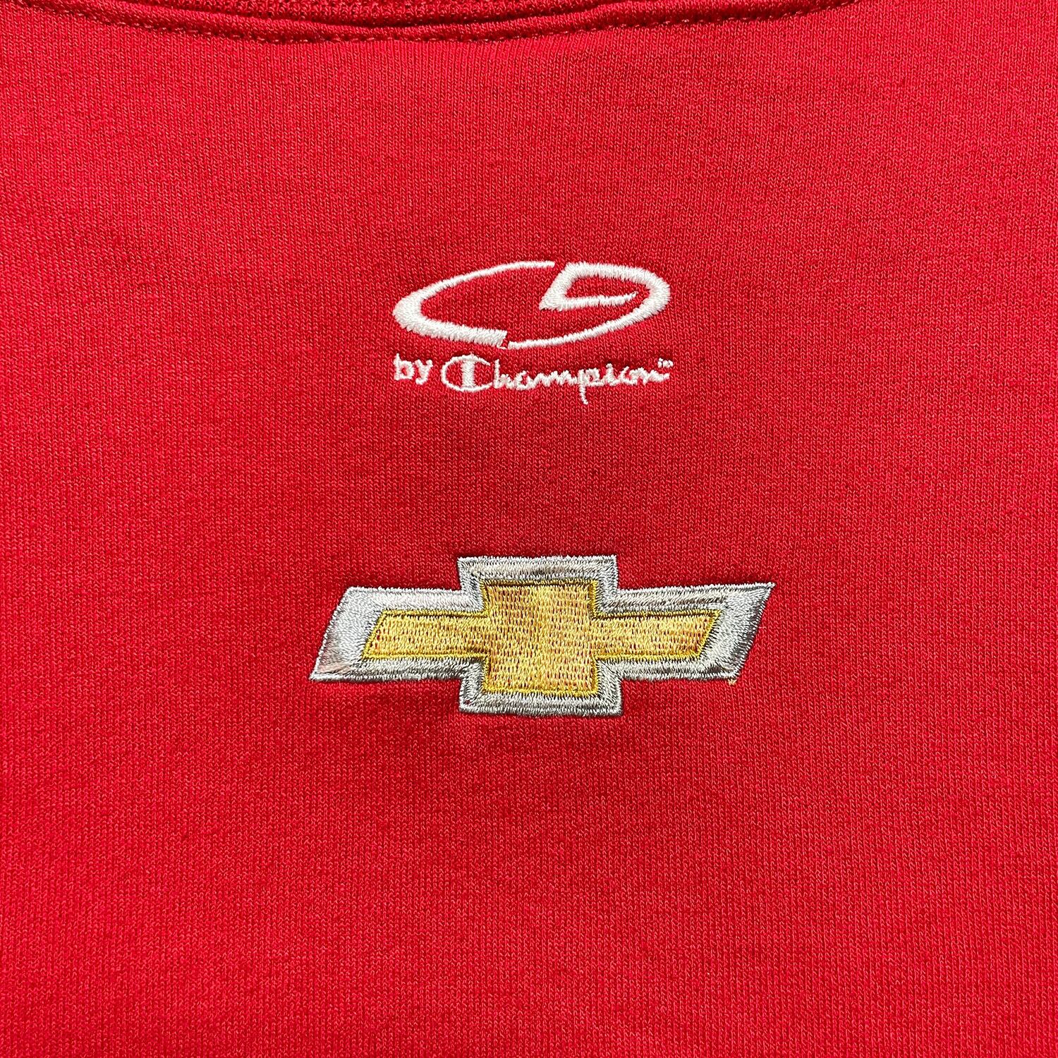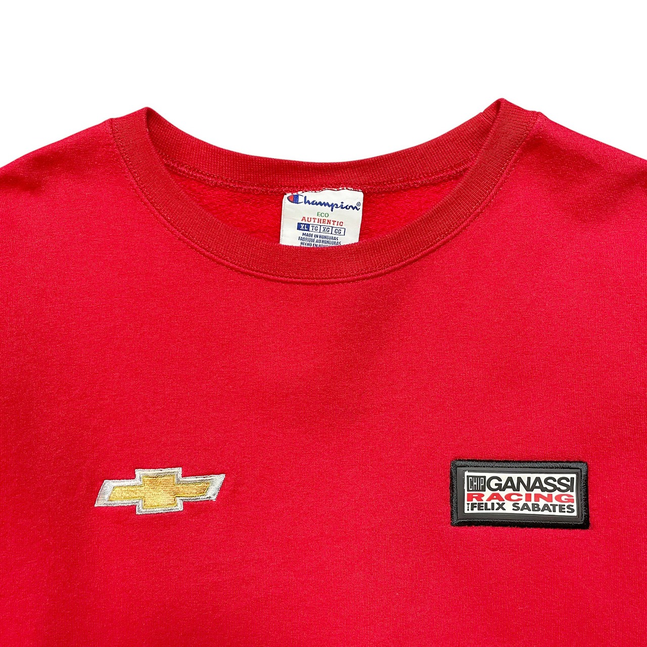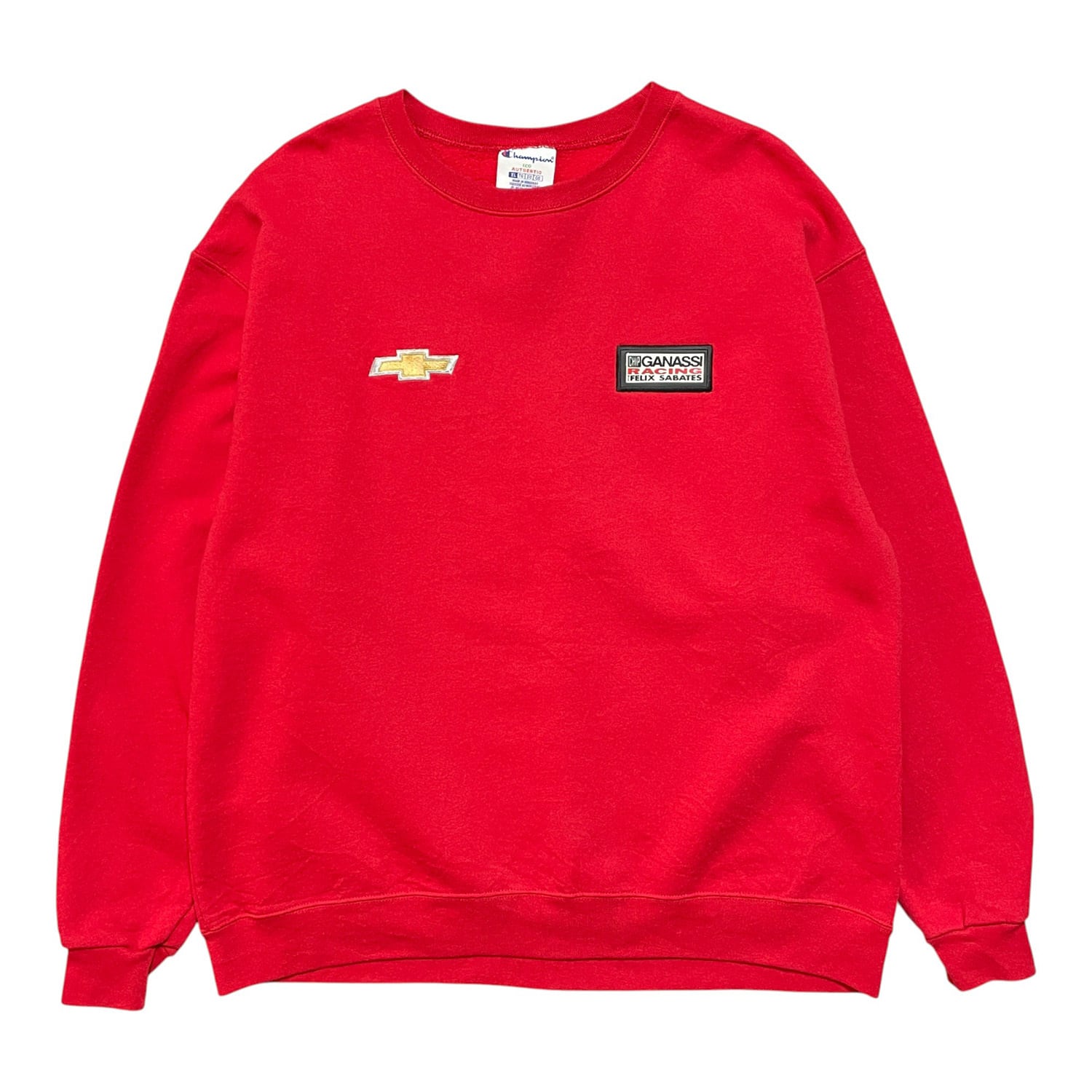 USA 古着 Champion チャンピオン シボレー チップガナッシレーシング スウェット トレーナー ロゴ 刺繍 レッド メンズXL クルーネック BD2616