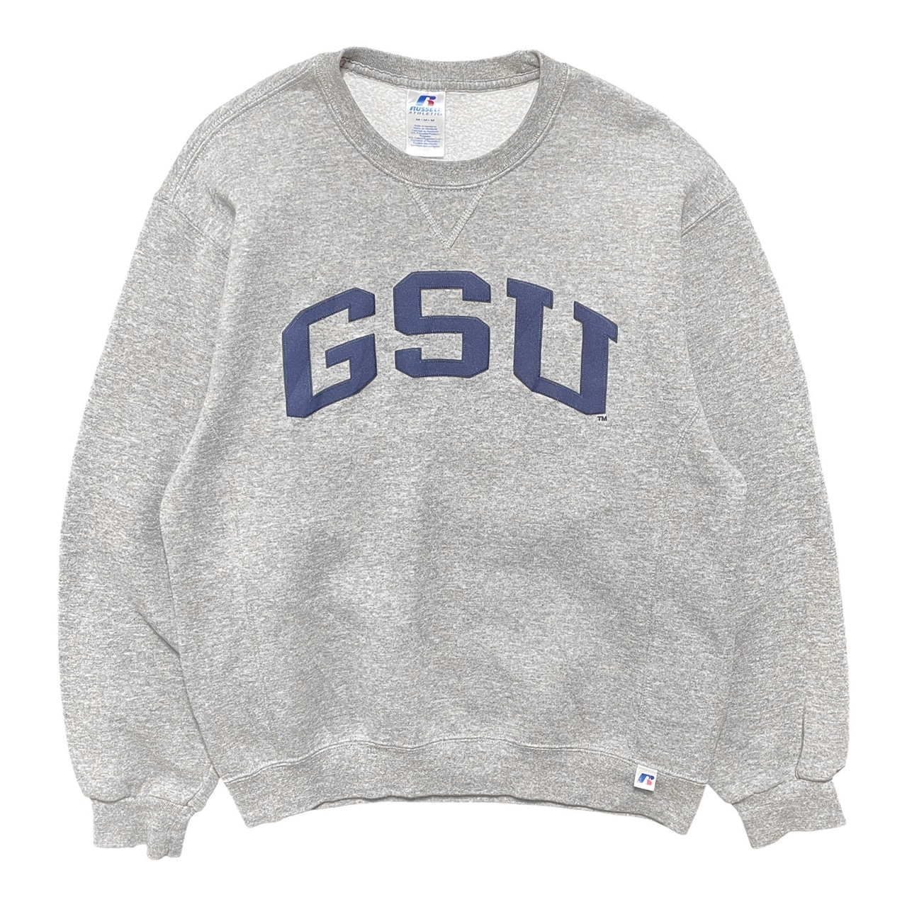 USA 古着 RUSEELL ラッセル ジョージア州立大学 カレッジ 前V スウェット トレーナー グレー メンズM クルーネック BD2618
