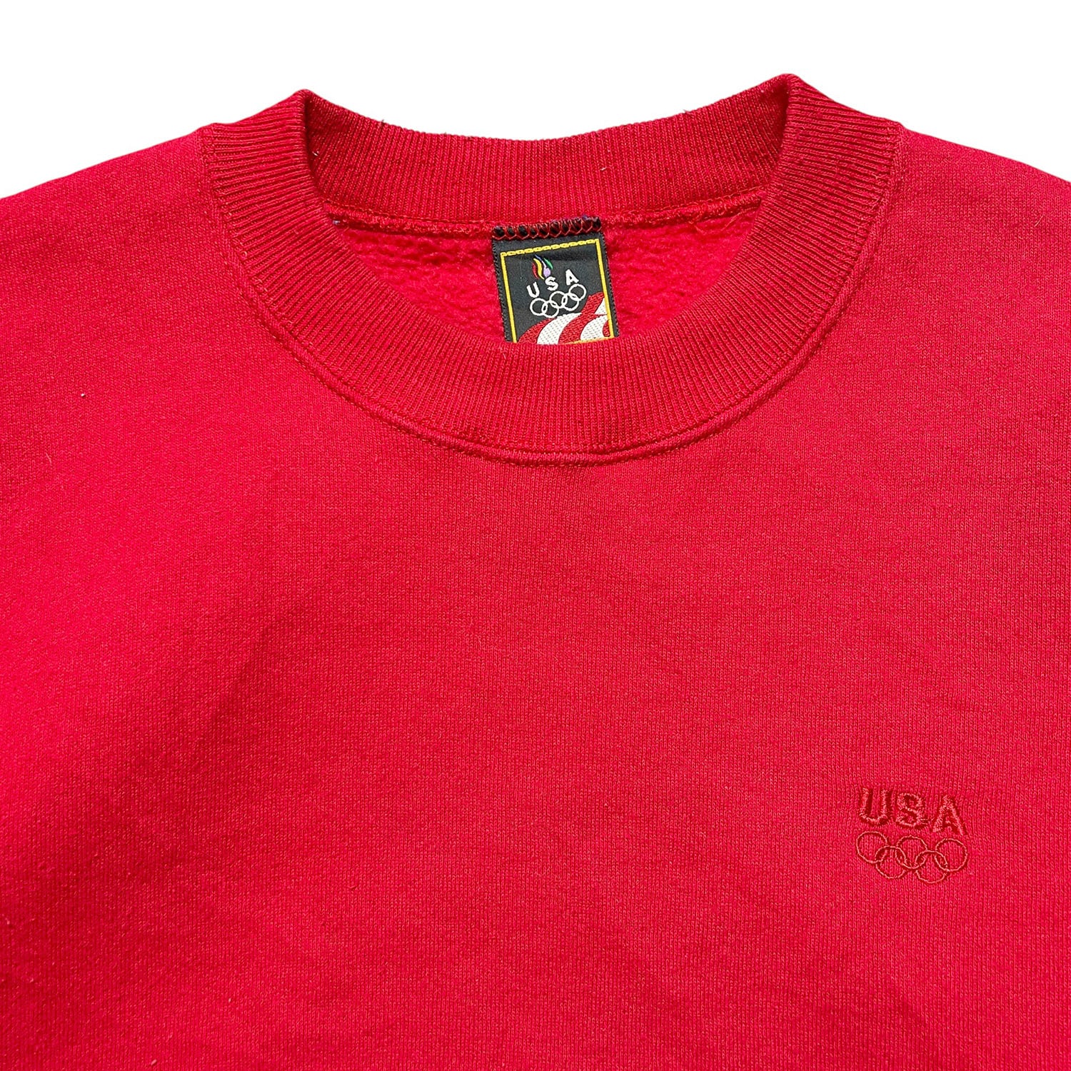 USA 古着 90S オリンピック アメリカ代表 ヴィンテージ スウェット トレーナー 刺繍 ワンポイント レッド メンズL クルーネック BD2625