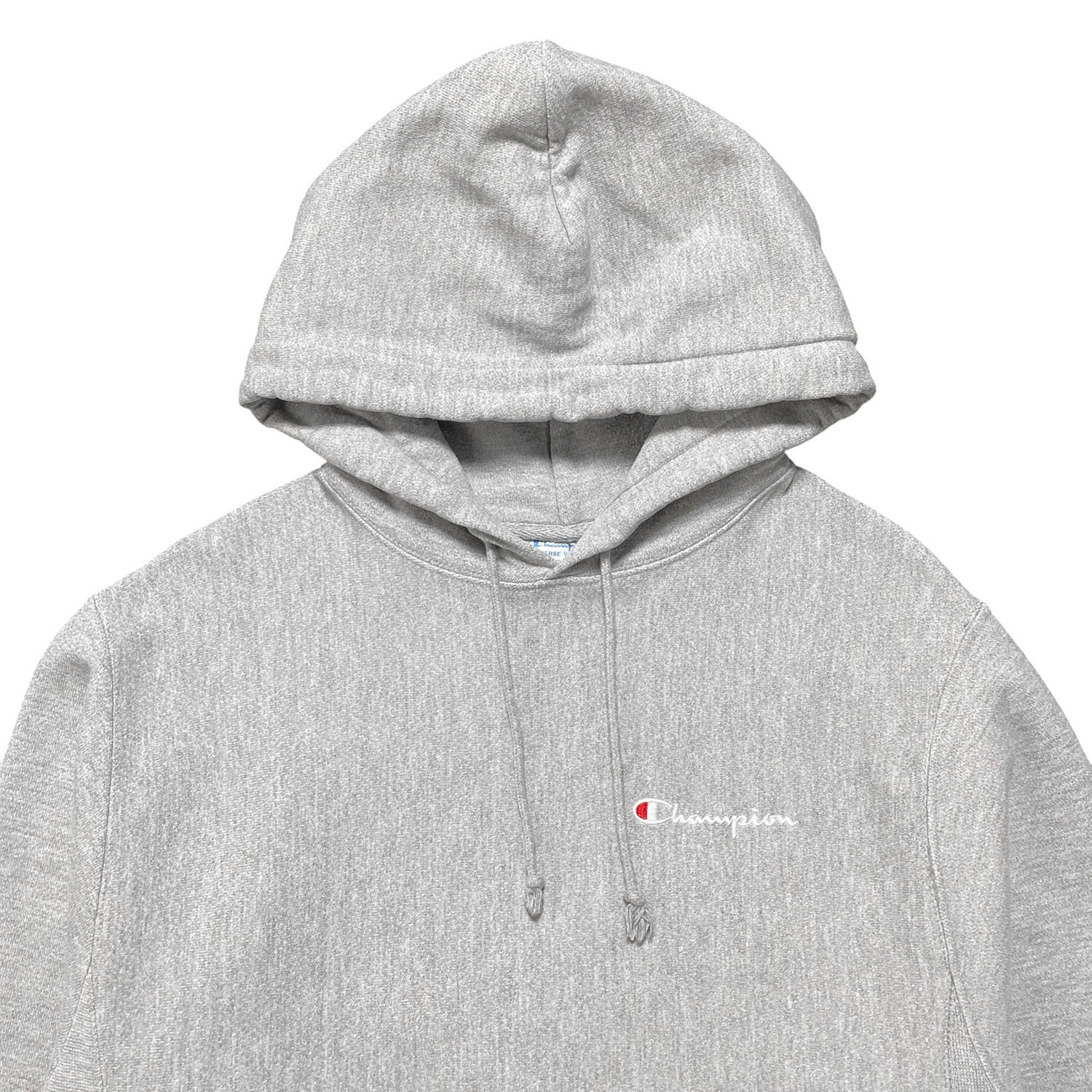 USA 古着 Champion チャンピオン リバースウィーブ スウェット パーカー ロゴ 刺繍 ワンポイント グレー メンズM フーディー BE0807