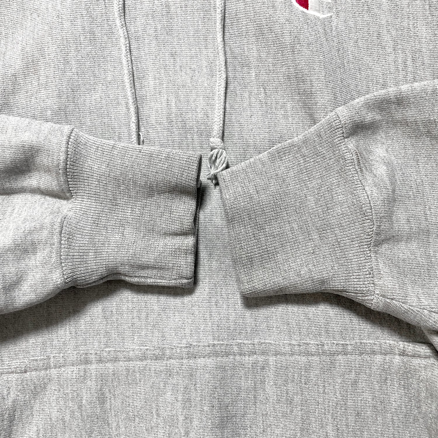 USA 古着 Champion チャンピオン リバースウィーブ スウェット パーカー 刺繍 ロゴ ワンポイント グレー メンズL フーディー BE0809