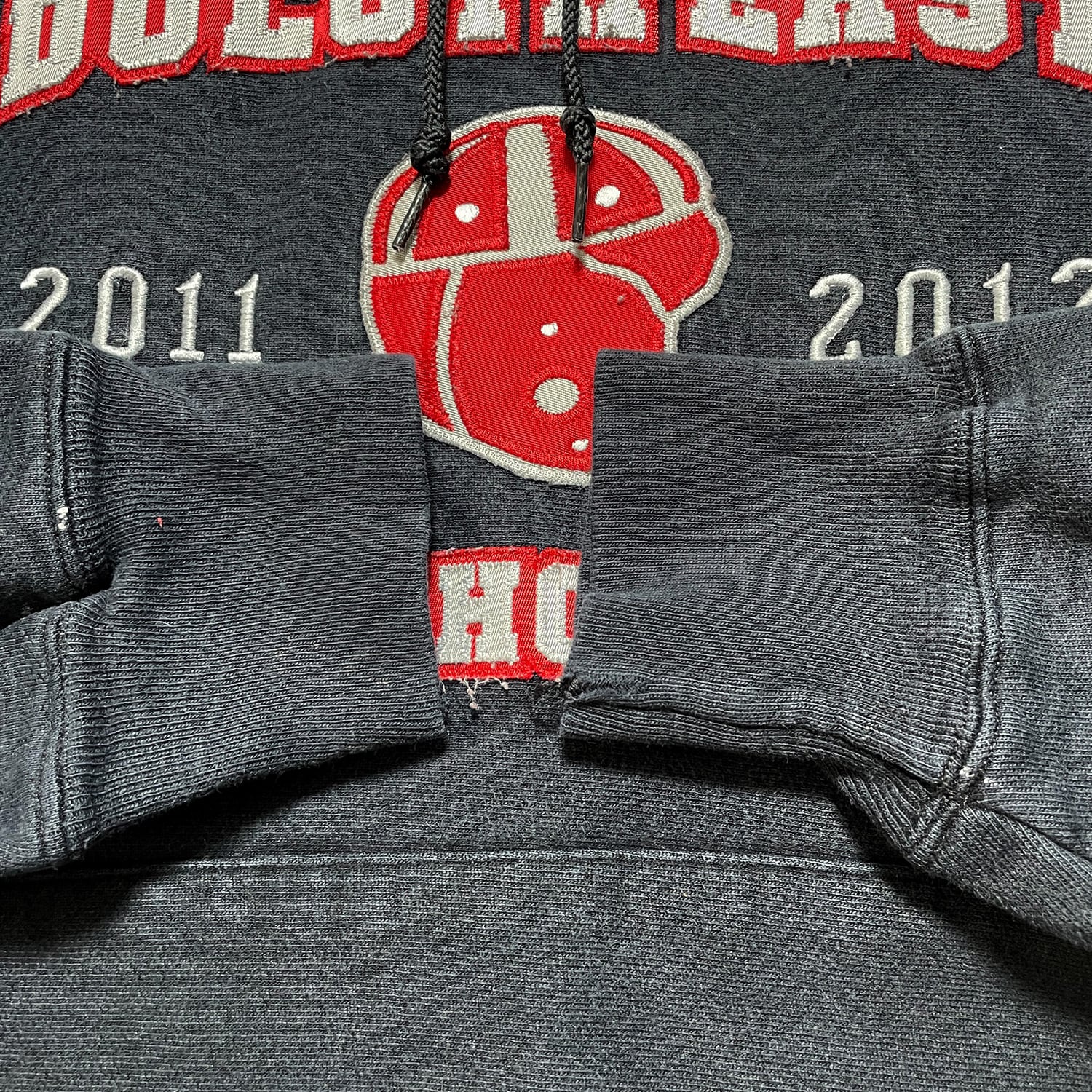 USA 古着 Champion チャンピオン プレミアムリバースウィーブ スウェット パーカー ロゴ 刺繍 メンズL ブラック フーディー BE0814