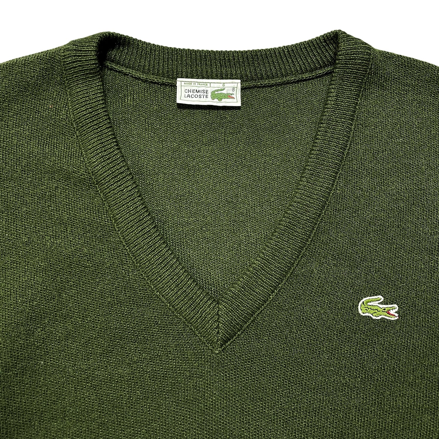 USA 古着 フランス製 LACOSTE ラコステ Vネック ウール/アクリル セーター サイズ6号 オリーブ フレンチ ヴィンテージ BJ0948